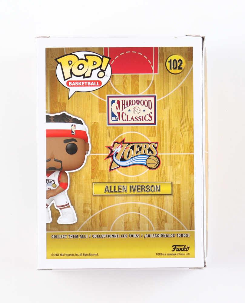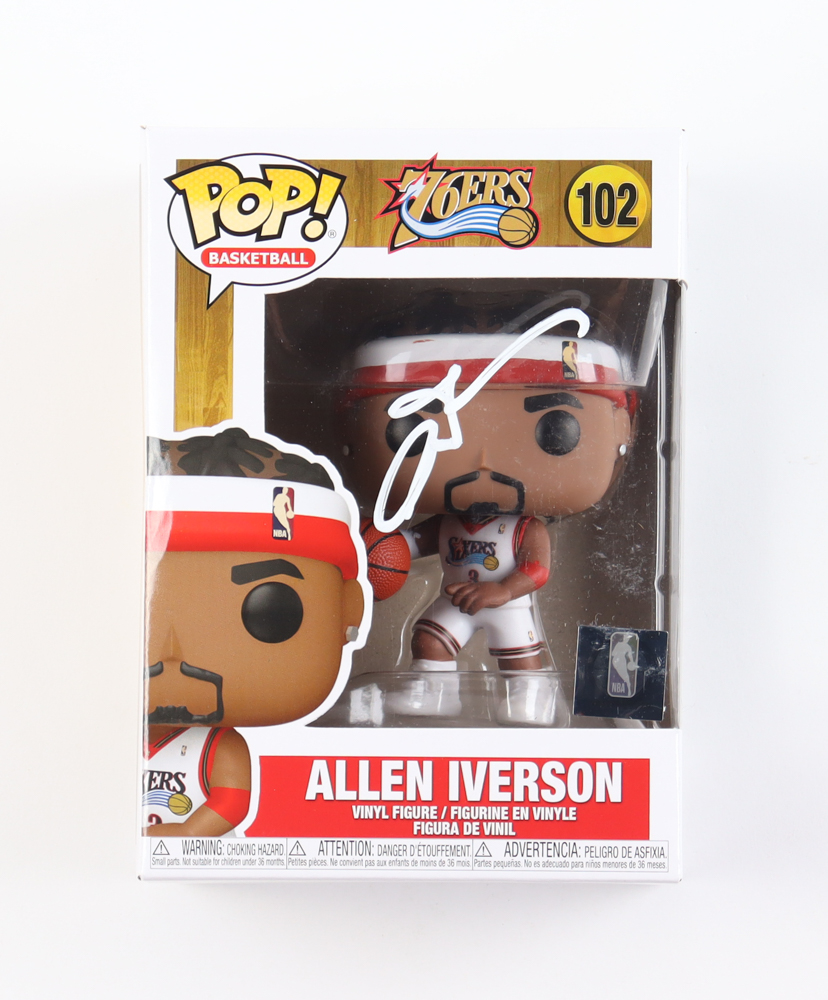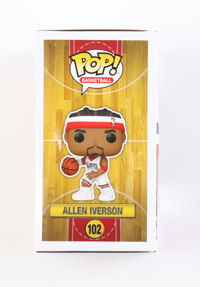 Funko Pop! vinyl figure measures approximately 4" tall and has been hand-signed on the packaging by Allen Iverson (Philadelphia 76ers, HOF).