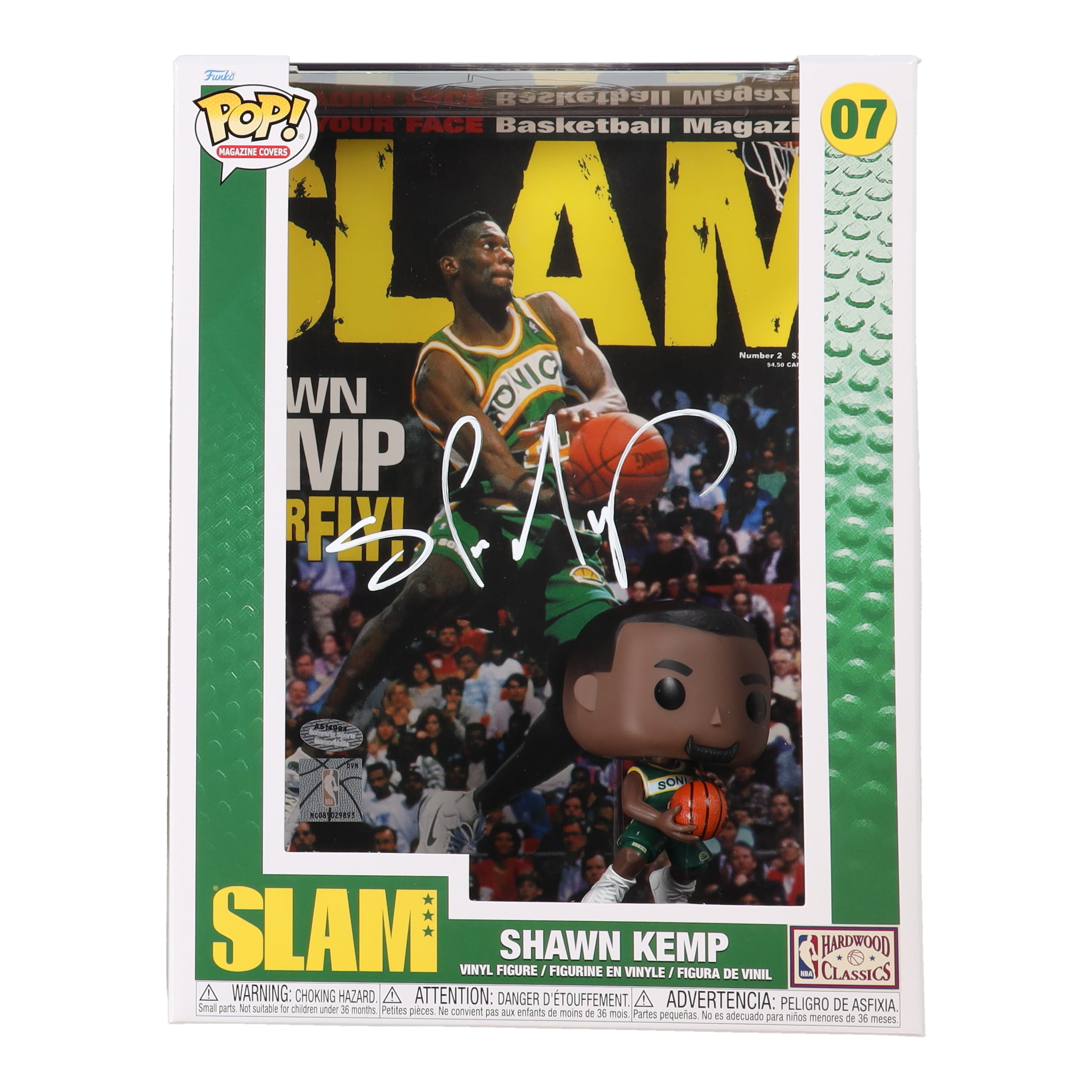 Shawn Kemp Signed Supersonics #07 NBA SLAM Funko Pop! Cover Vinyl Figure (Schwartz)