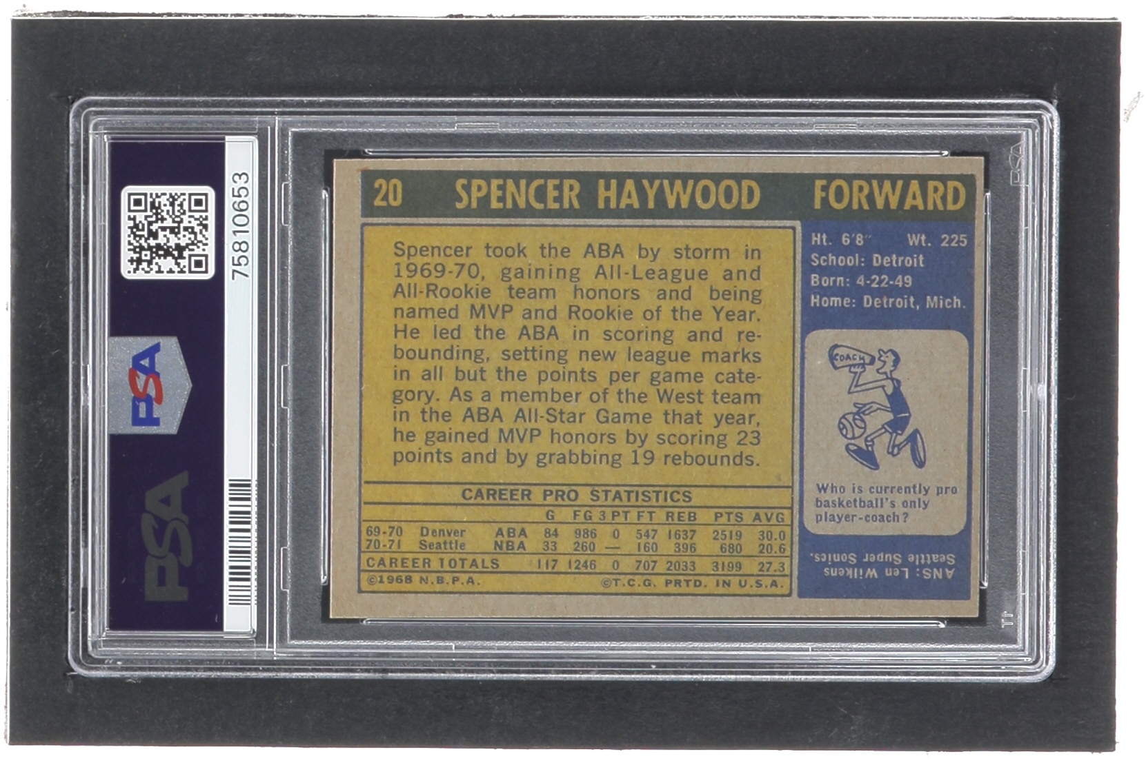 Spencer Haywood 1971-72 Topps #20 RC (PSA 5)