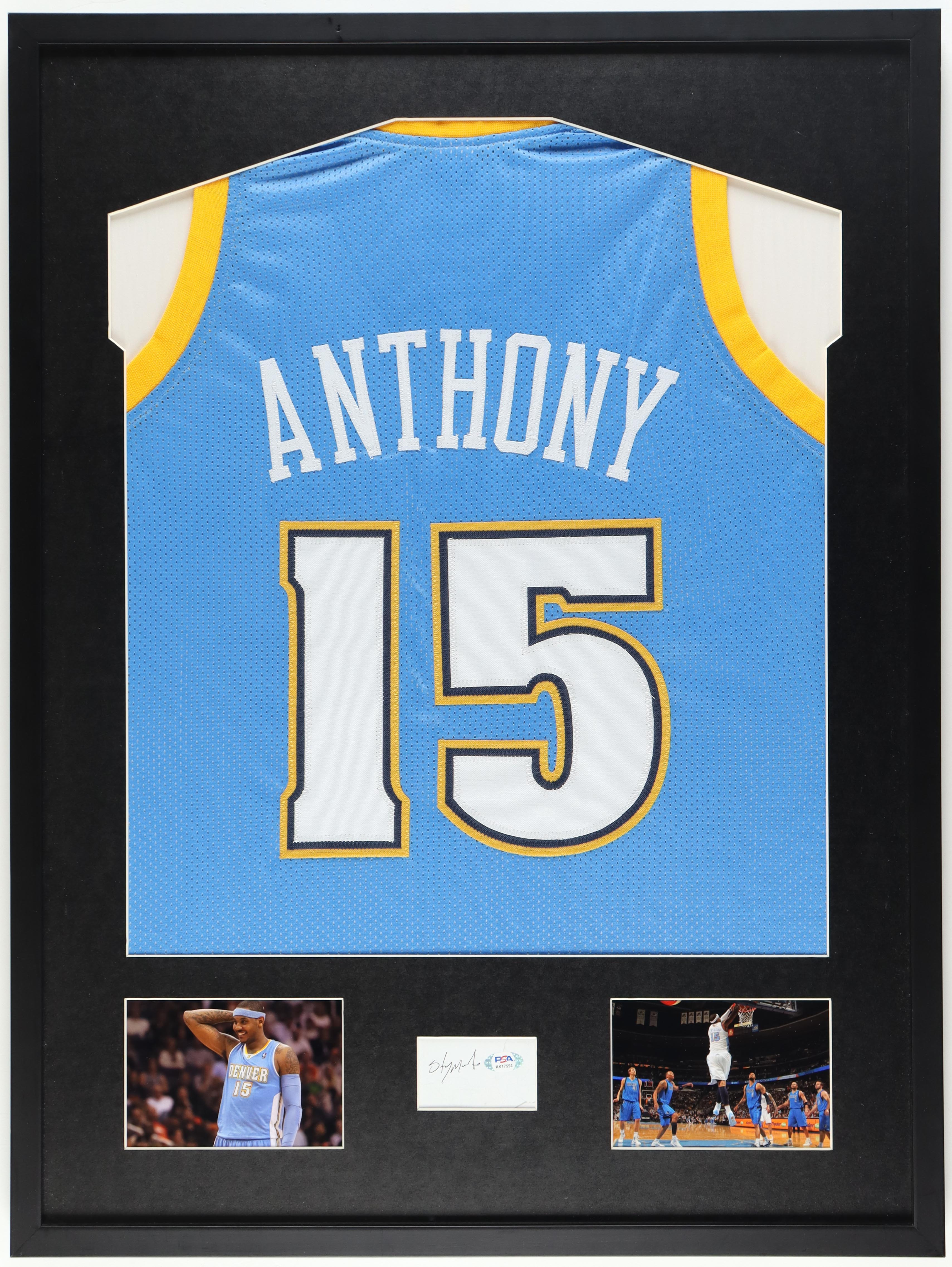 Carmelo Anthony Signed Custom Framed Cut Display with Jersey (PSA)