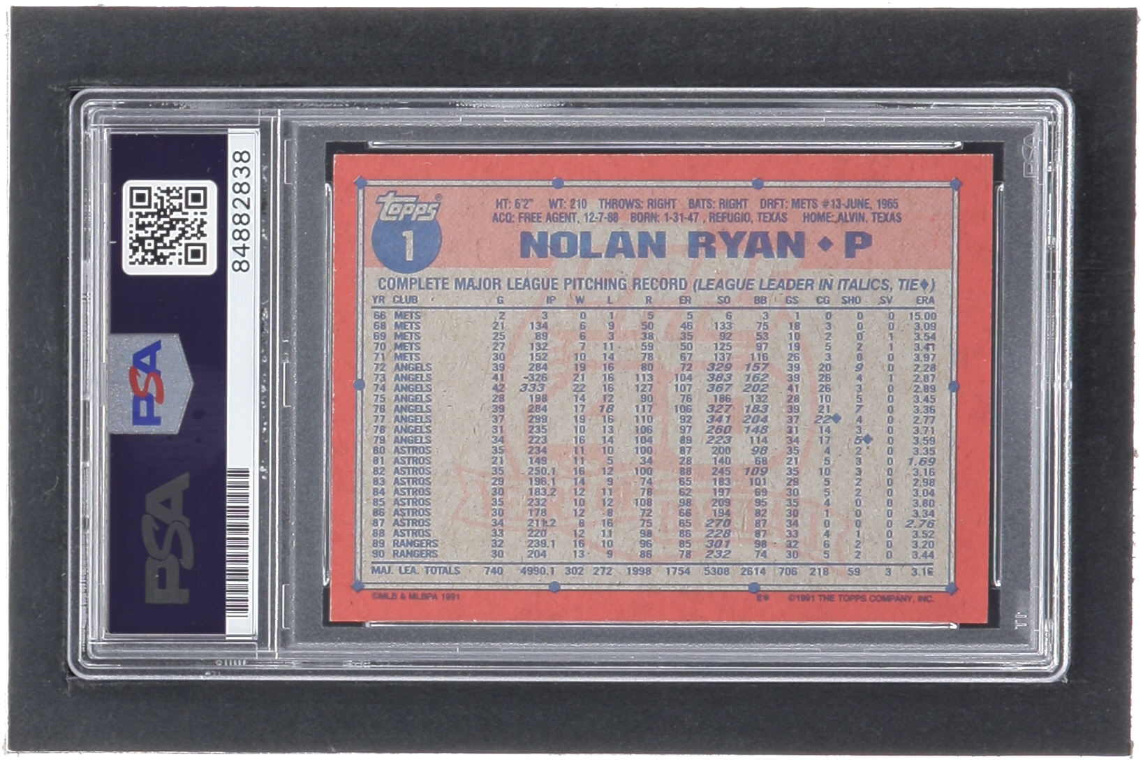 Nolan Ryan Signed 1991 Topps #1 (PSA)