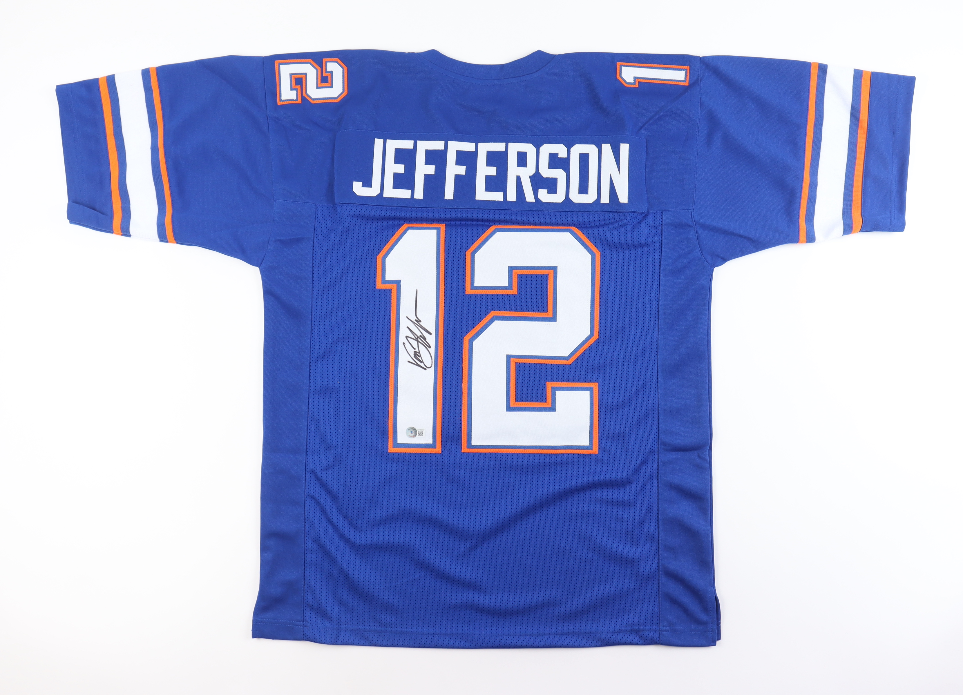 Custom jersey with everything sewn on, size XL. Hand-signed by Van Jefferson.