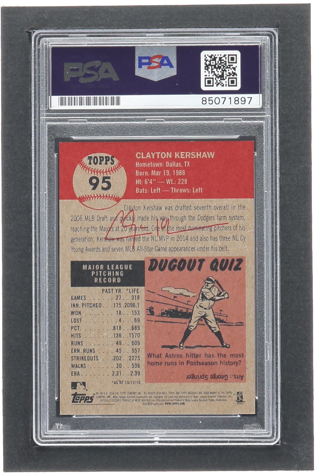 Clayton Kershaw Signed 2018 Topps Living #95 (PSA | Auto Grade 10)