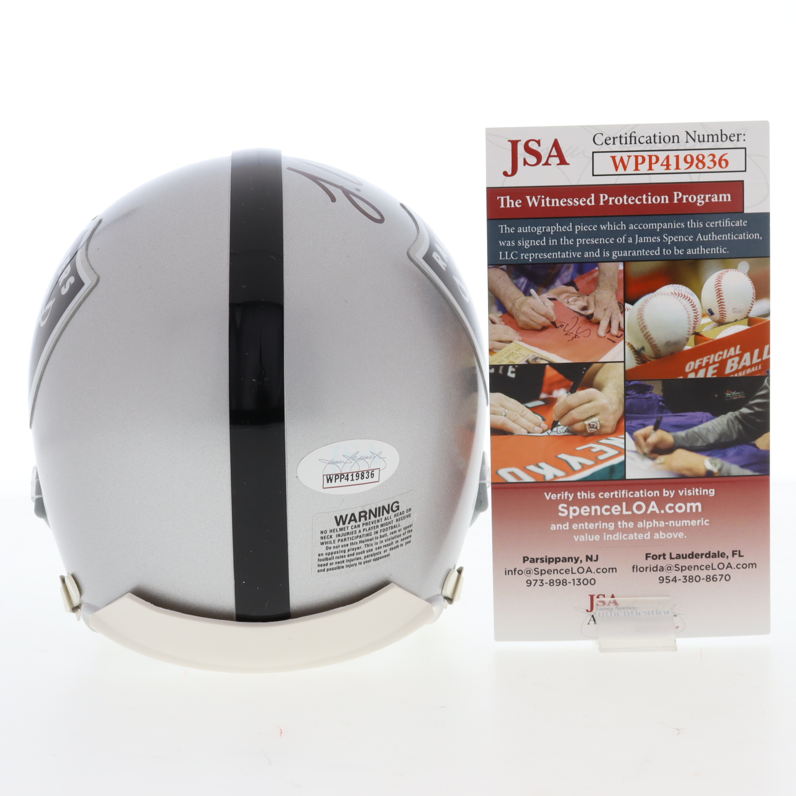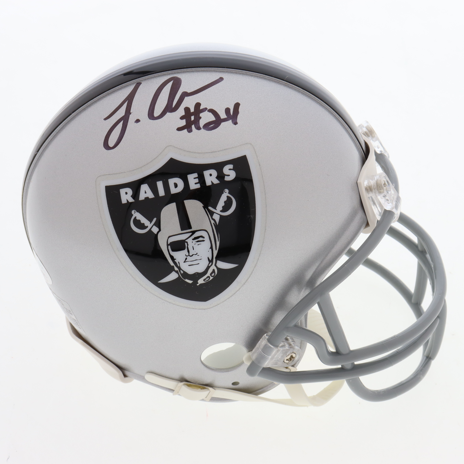 Riddell Oakland Raiders mini helmet has been hand-signed by Johnathan Abram.