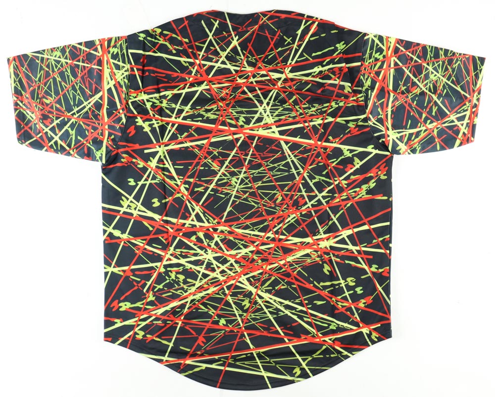Custom jersey. Everything is sewn on, size XL. Hand-signed and inscribed by Brian Knobbs and Jerry Sags.