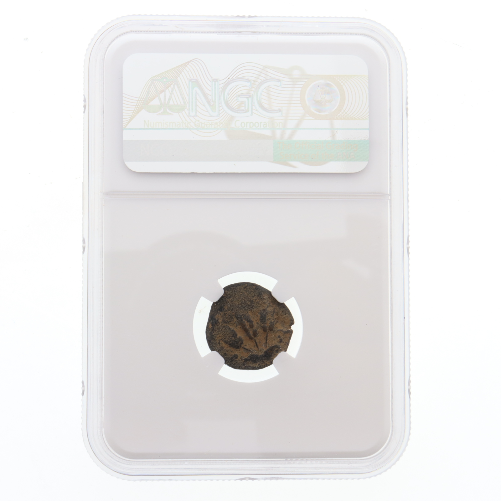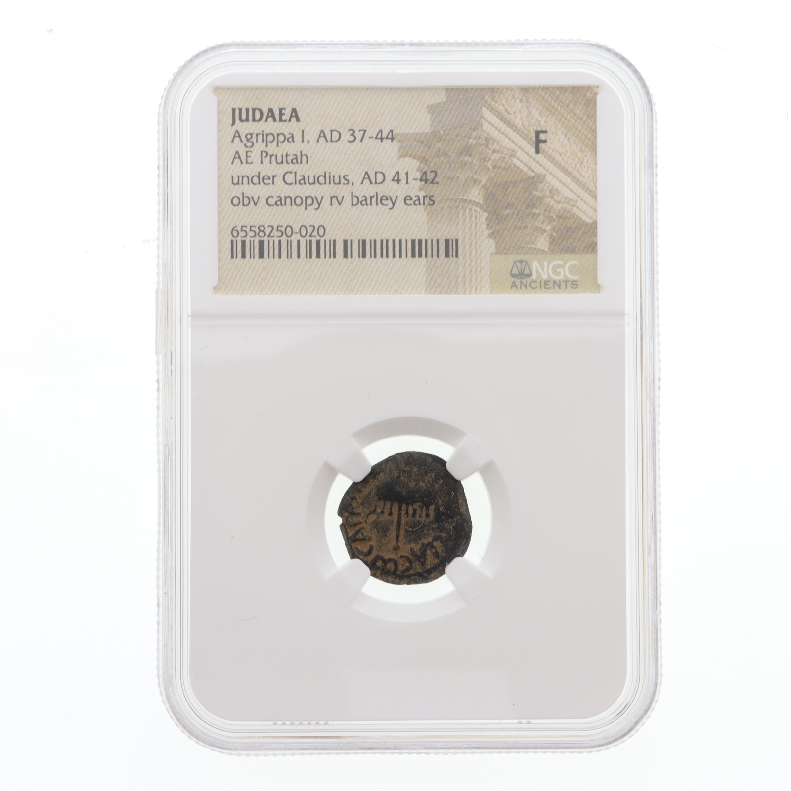 Judaea - Agrippa I, AD 37-44, AE Prutah, under Cladius, AD 41-42, Obverse Canopy Reverse Barley Ears (NGC VG)