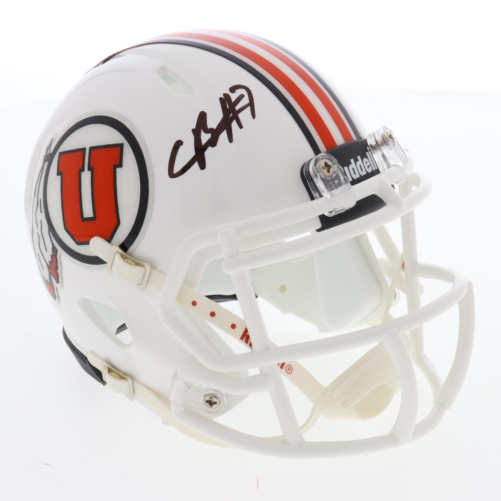 Riddell Utah Utes Speed mini helmet. Hand-signed by Cameron Rising.