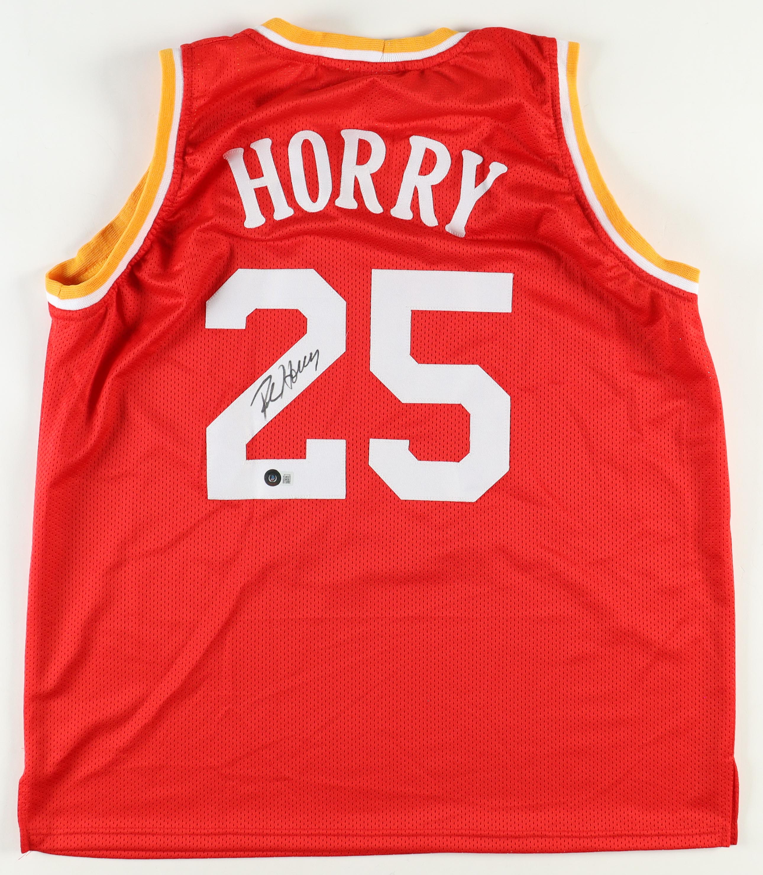 Custom jersey with everything sewn on, size XL. Hand-signed by Robert Horry.