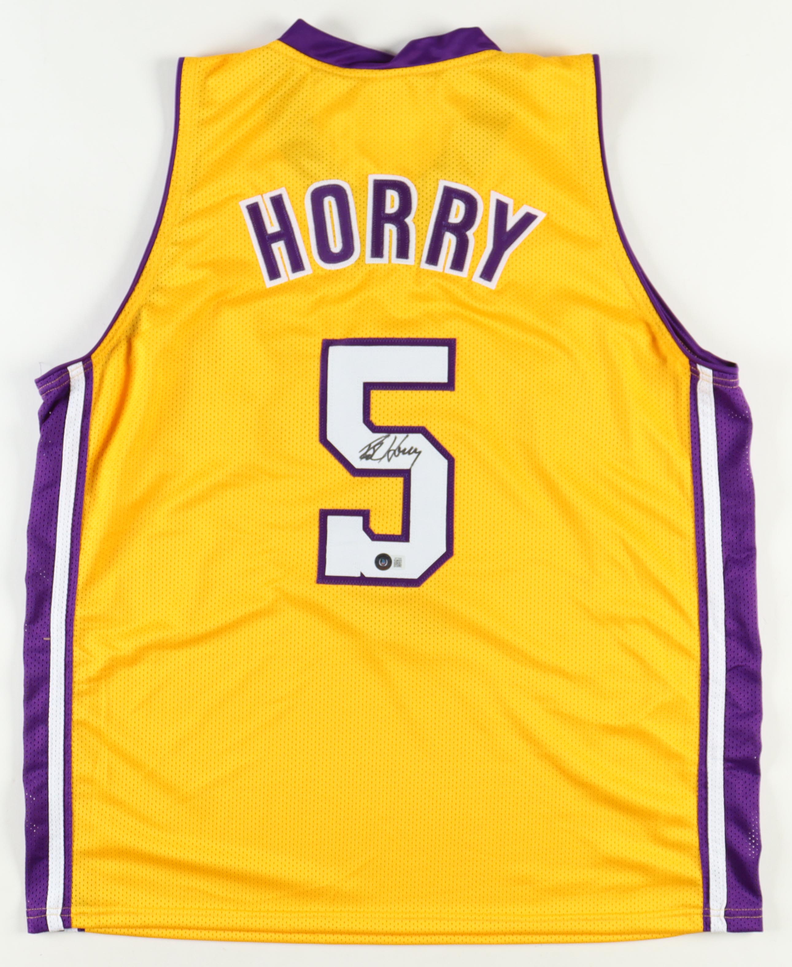 Custom jersey with everything sewn on, size XL. Hand-signed by Robert Horry.
