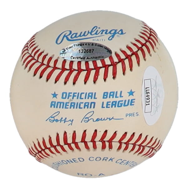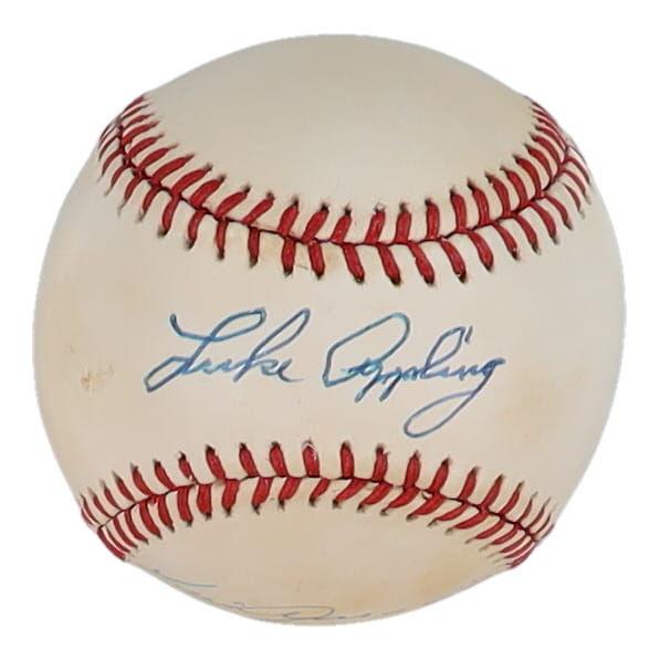 Rawlings Official American League baseball has been hand-signed by Luke Appling (D. 1991, HOF) and Luis Aparicio (Chicago White Sox, HOF).