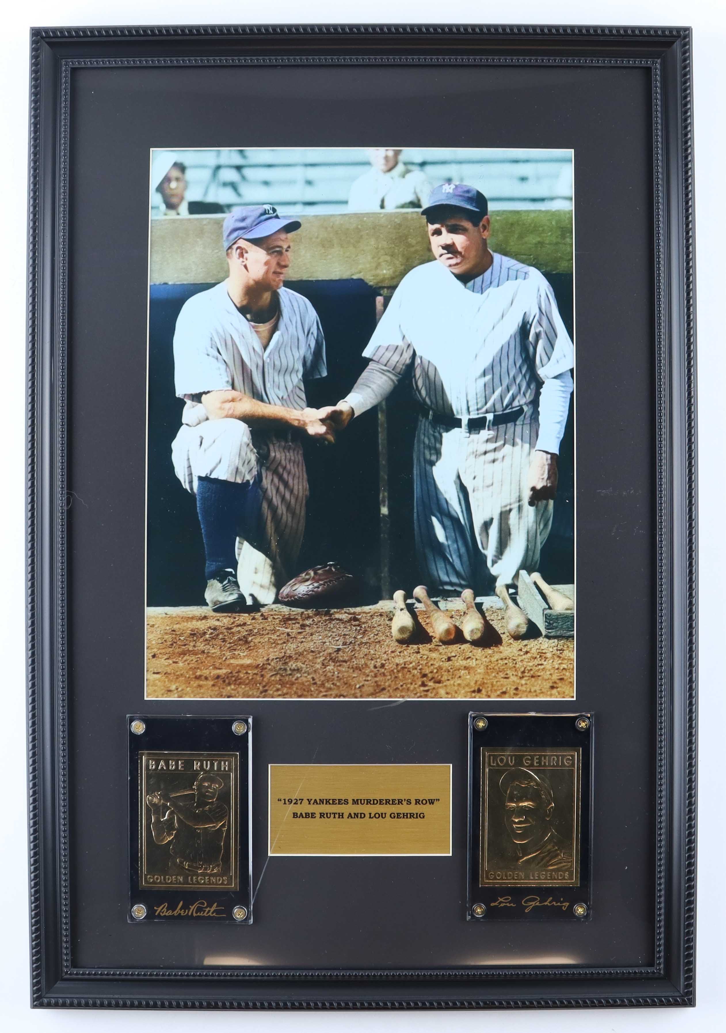 Babe Ruth & Lou Gehrig "The Murderer's Row" Yankees Custom Framed Photo Display with (2) 23kt Gold Trading Cards