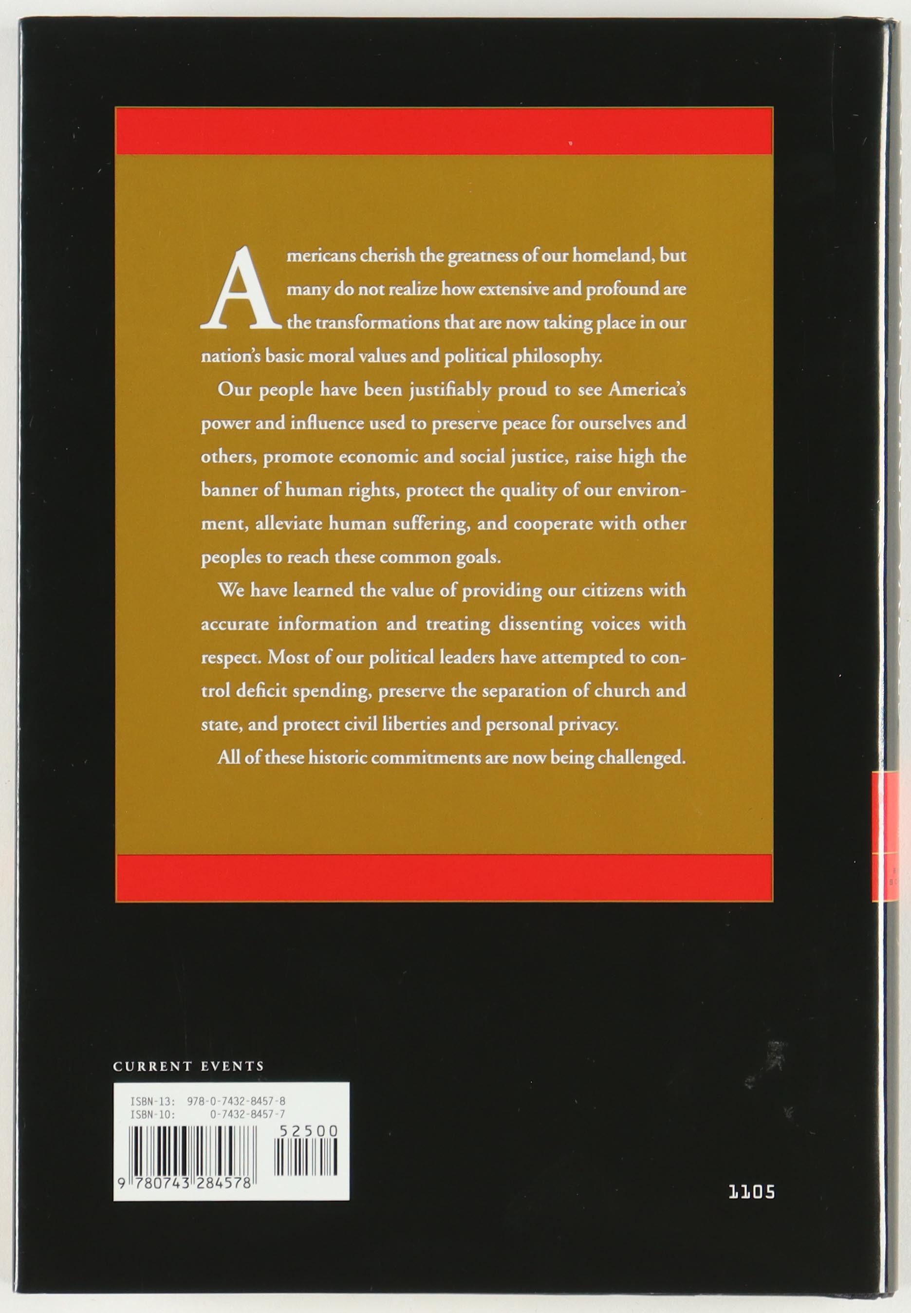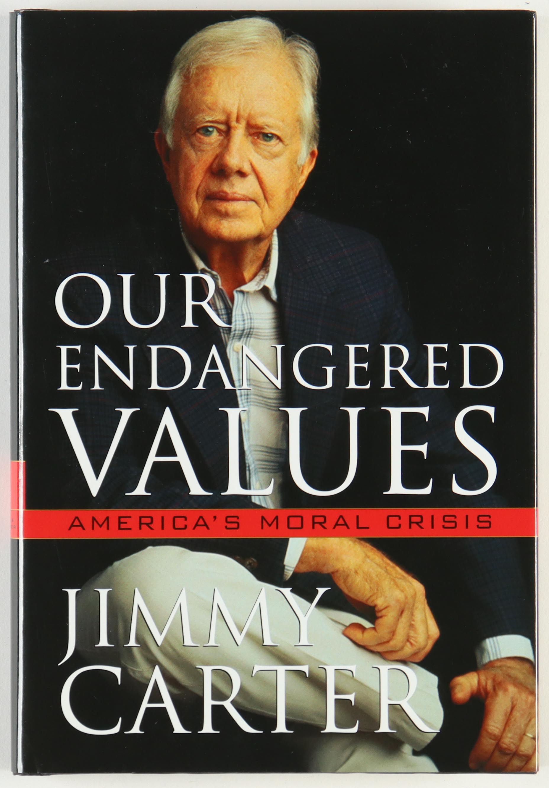 "Our Endangered Values" hardcover book. Hand-signed on the inside title page by Jimmy Carter.