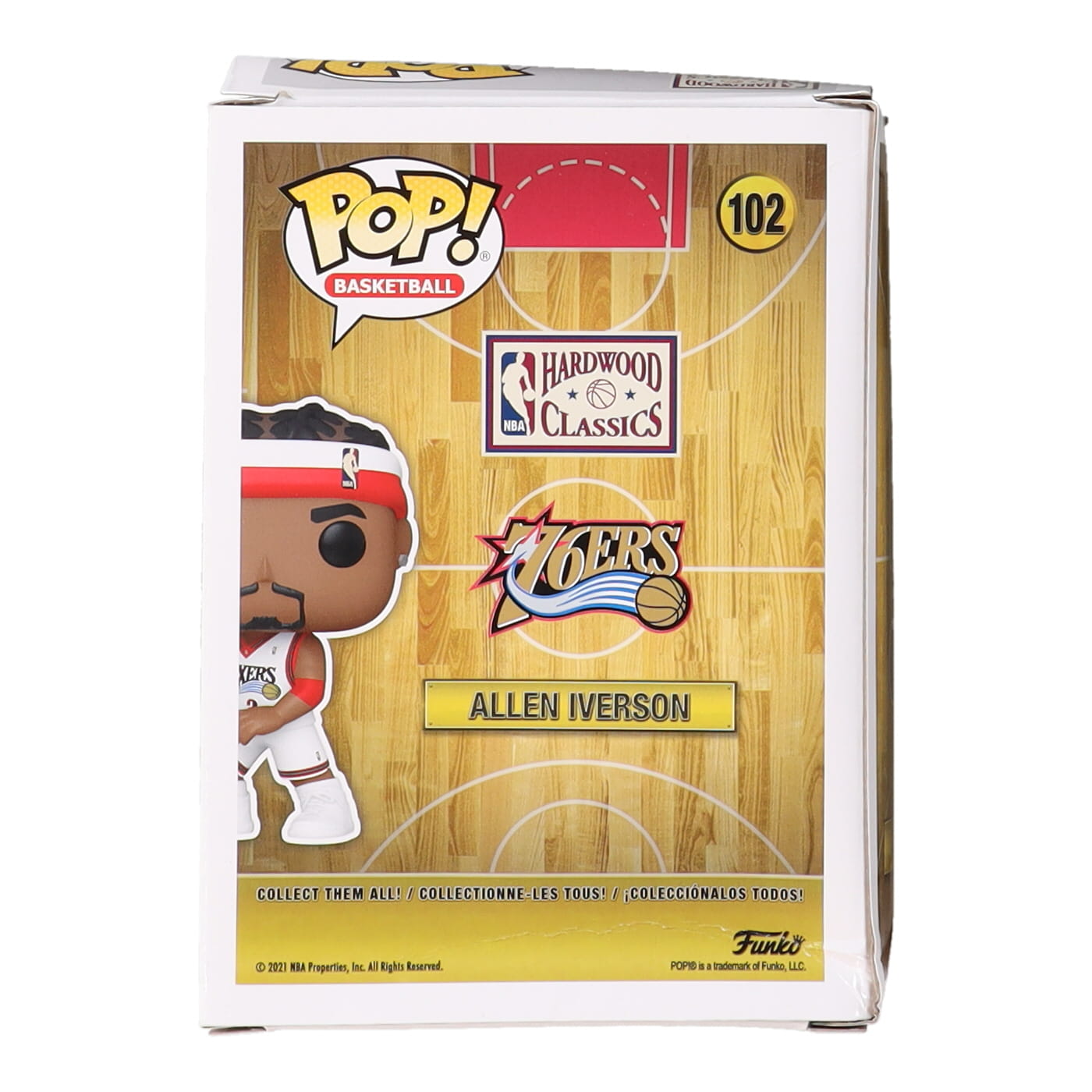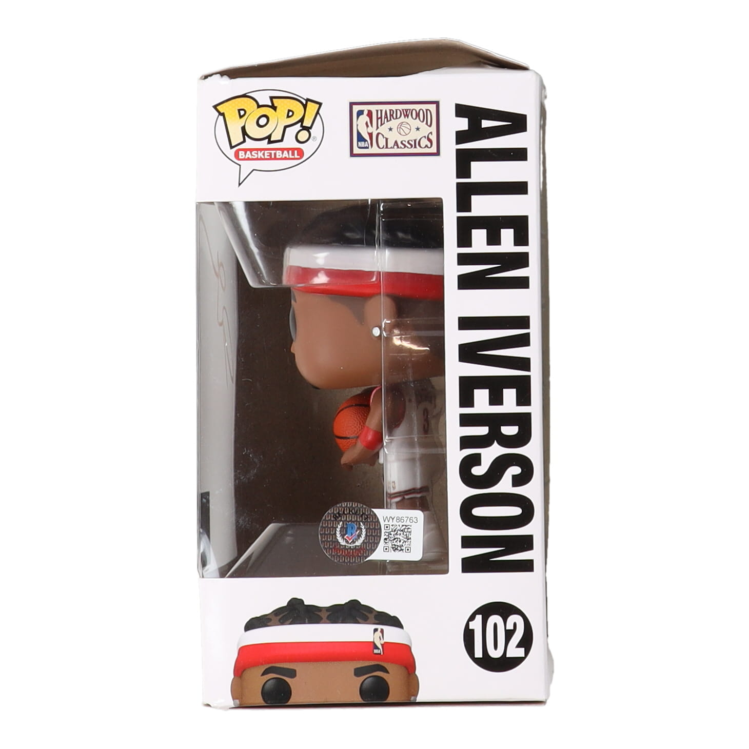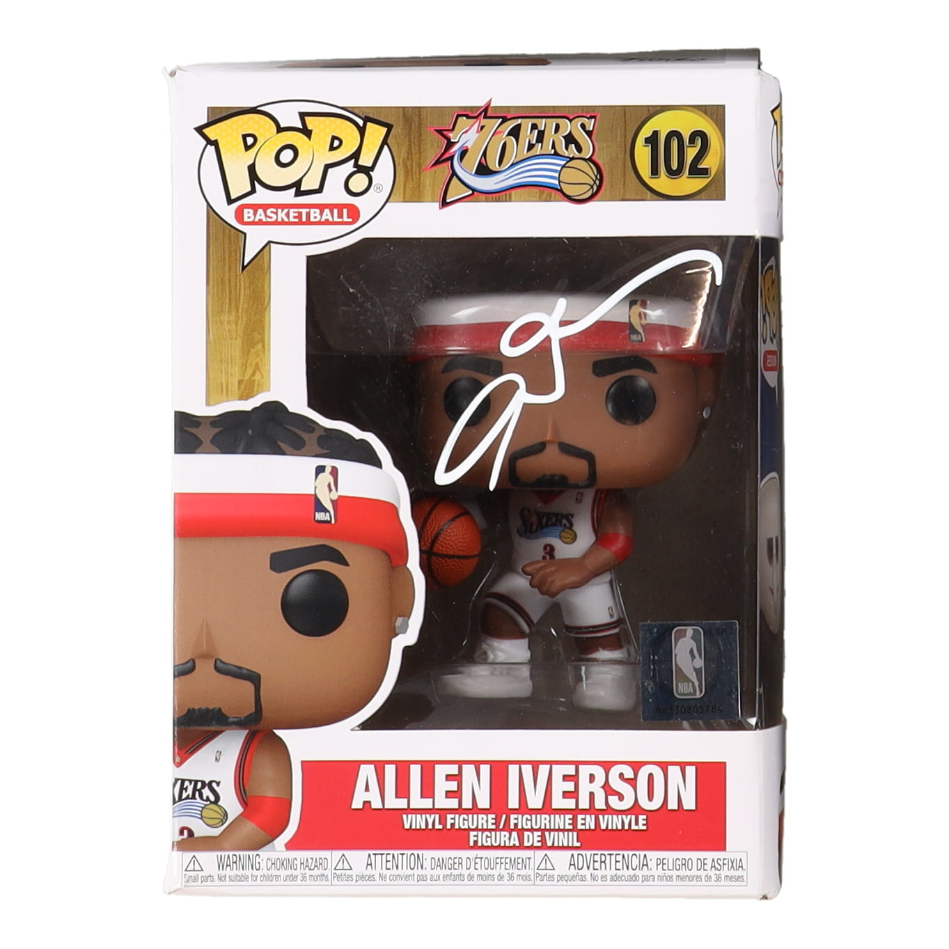 Funko Pop! vinyl figure measures approximately 4" tall and has been hand-signed on the packaging by Allen Iverson (Philadelphia 76ers, HOF). Please note, the top of the box shows signs of wear.