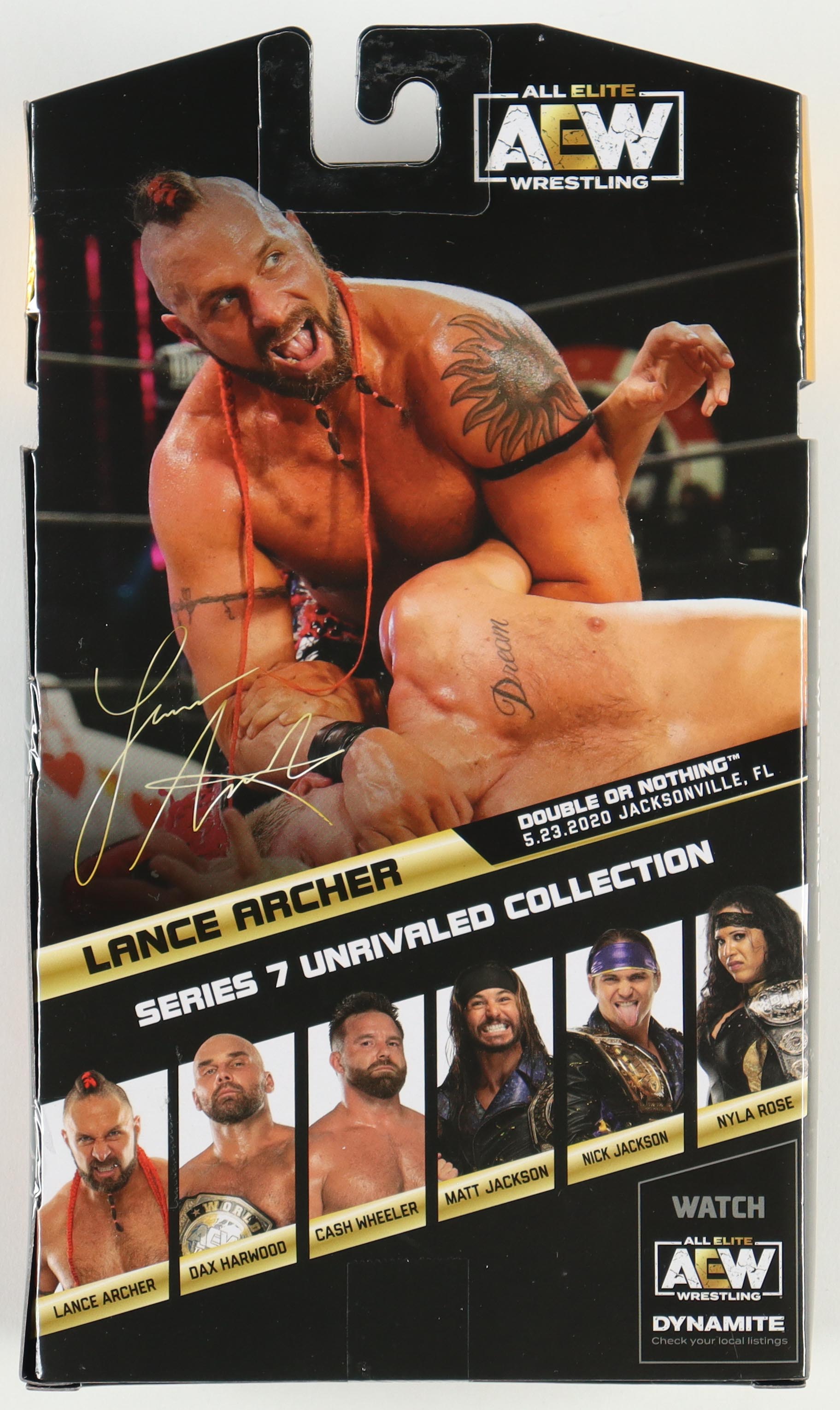 Unrivaled Collection AEW action figure. Hand-signed and inscribed on the box by Lance Archer.
