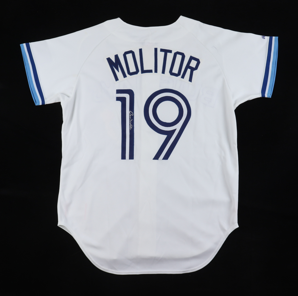 Rawlings jersey with everything sewn on, size XL. Hand-signed by Paul Molitor (Toronto Blue Jays, HOF).