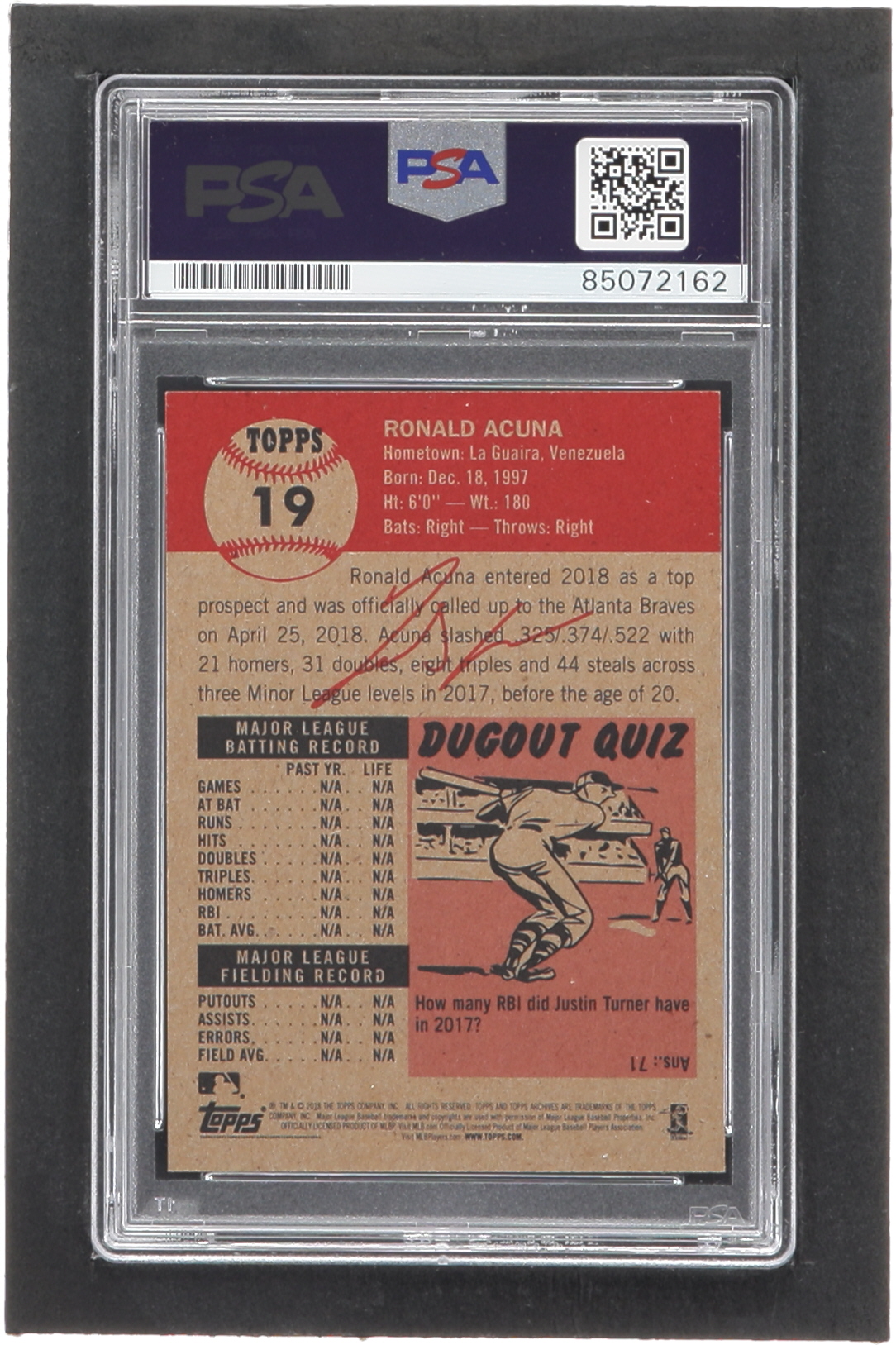 Ronald Acuna Jr. Signed 2018 Topps Living #19 RC (PSA | Autograpg Graded PSA 10)