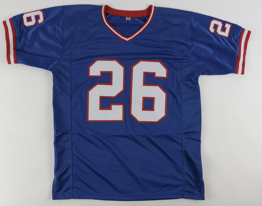 Custom jersey. Everything is sewn on, size XL. Hand-signed by Saquon Barkley.
