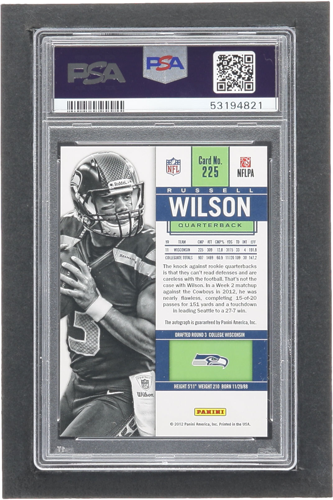 Russell Wilson 2012 Panini Contenders #225A Autograph RC (PSA 10)