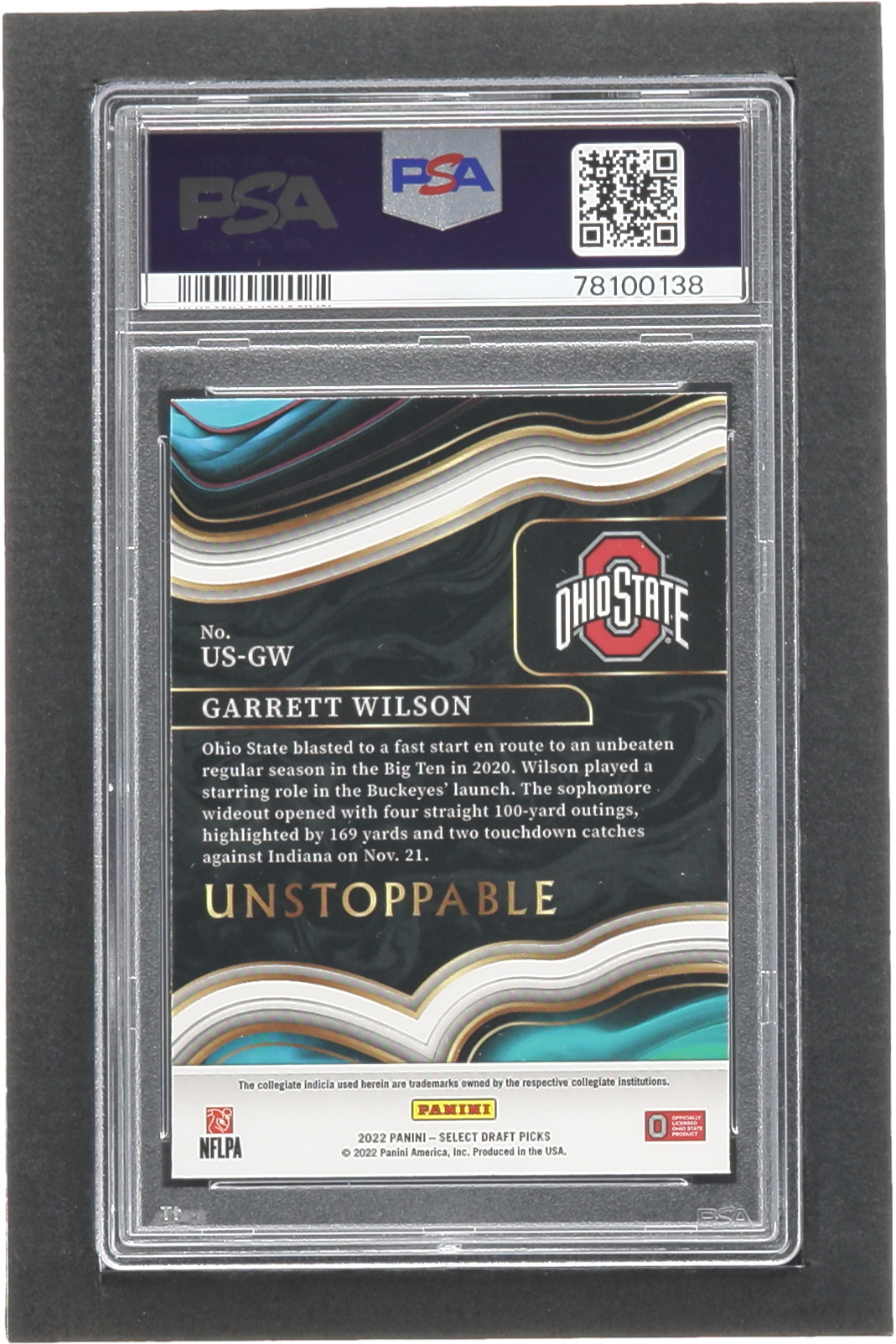 Garrett Wilson 2022 Select Draft Picks Unstoppable #8 RC (PSA 10)