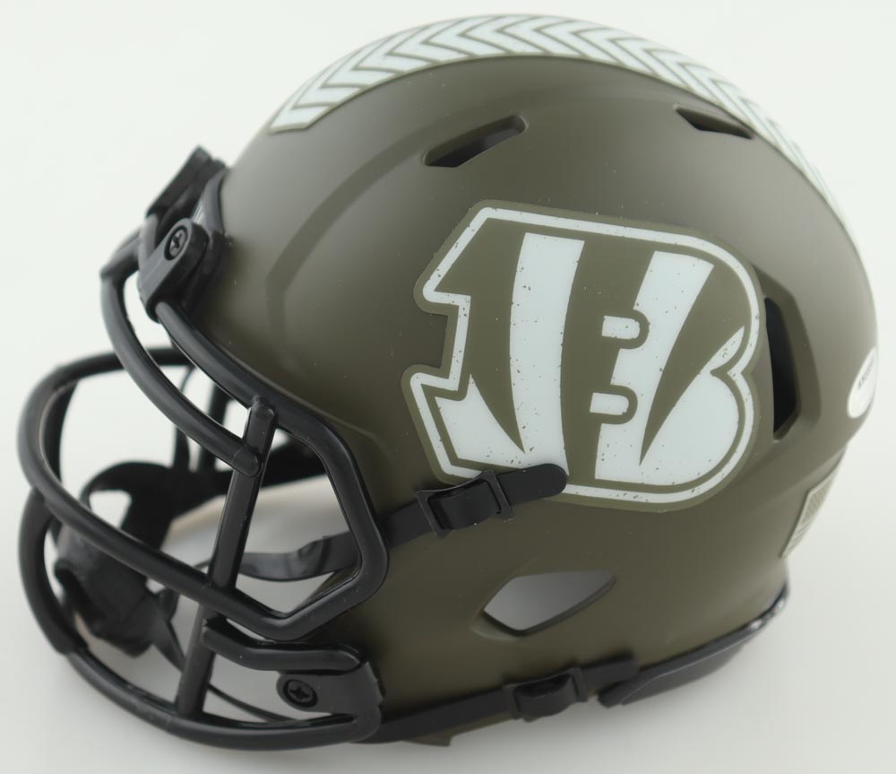 Riddell Cincinnati Bengals Salute to Service Speed mini helmet. Hand-signed by Ken Anderson.