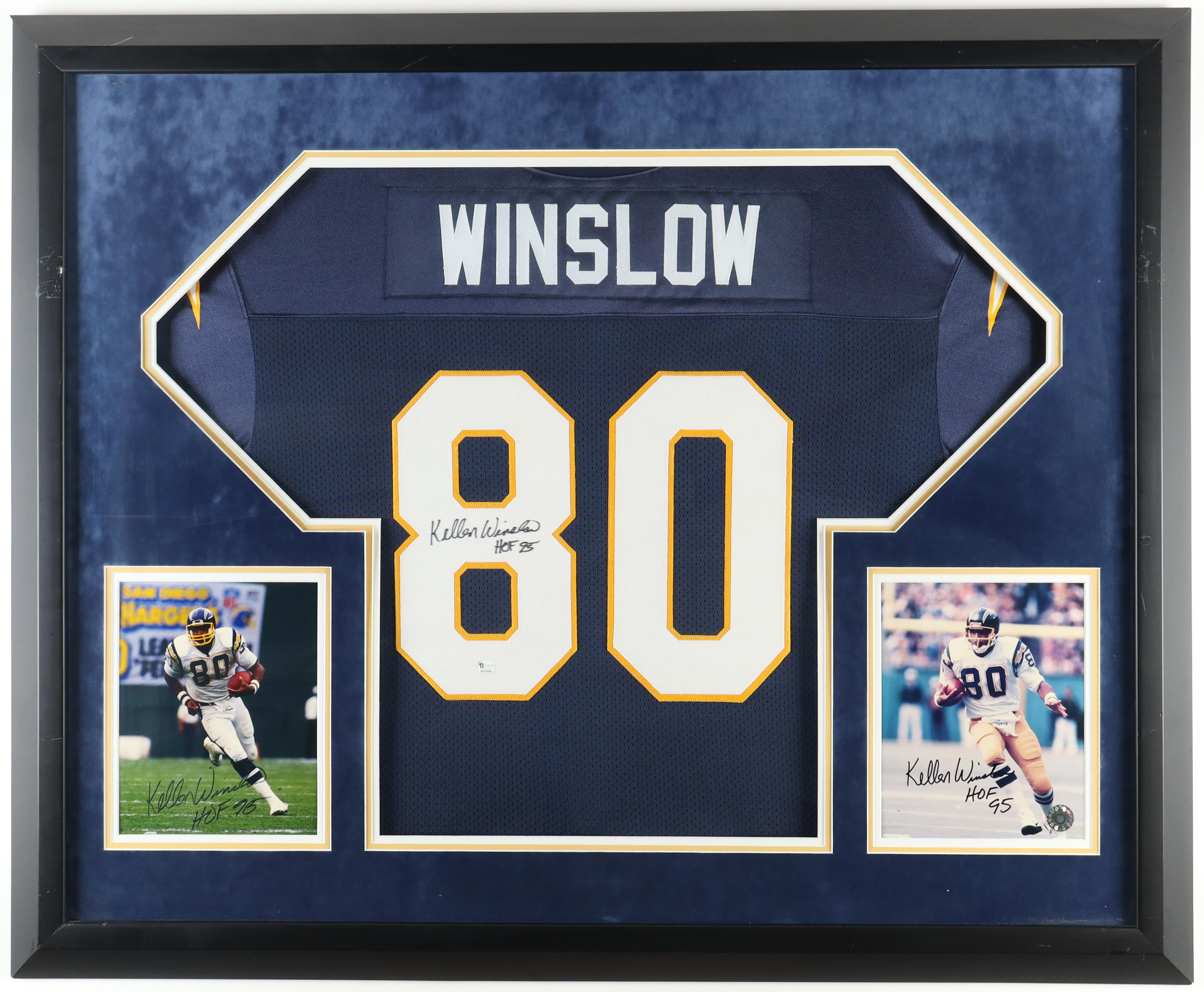 Kellen Winslow Signed Custom Framed Photos & Jersey Display Inscribed "HOF 95" (JSA)