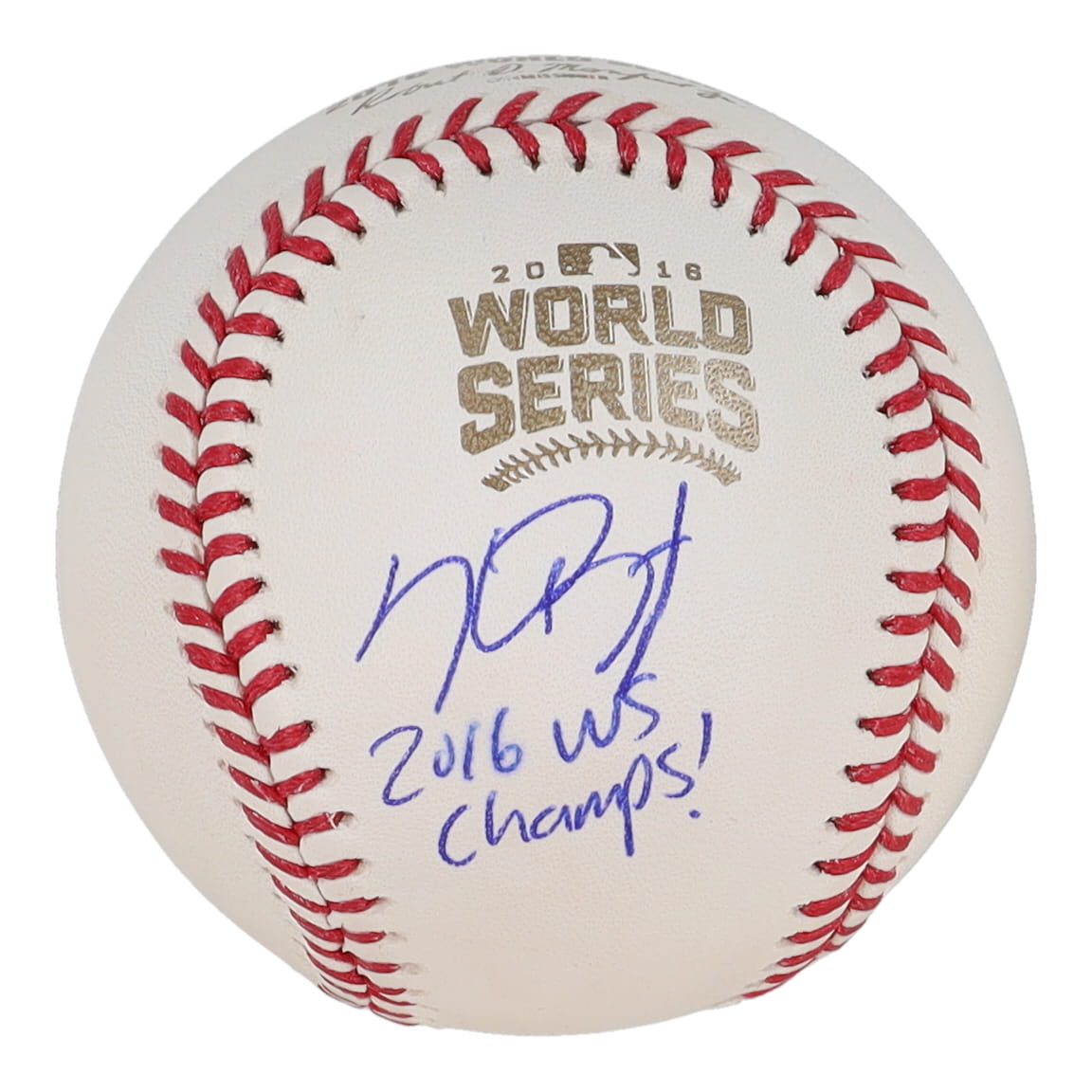 Rawlings Official 2016 World Series baseball. Hand-signed and inscribed by Kris Bryant (Chicago Cubs).