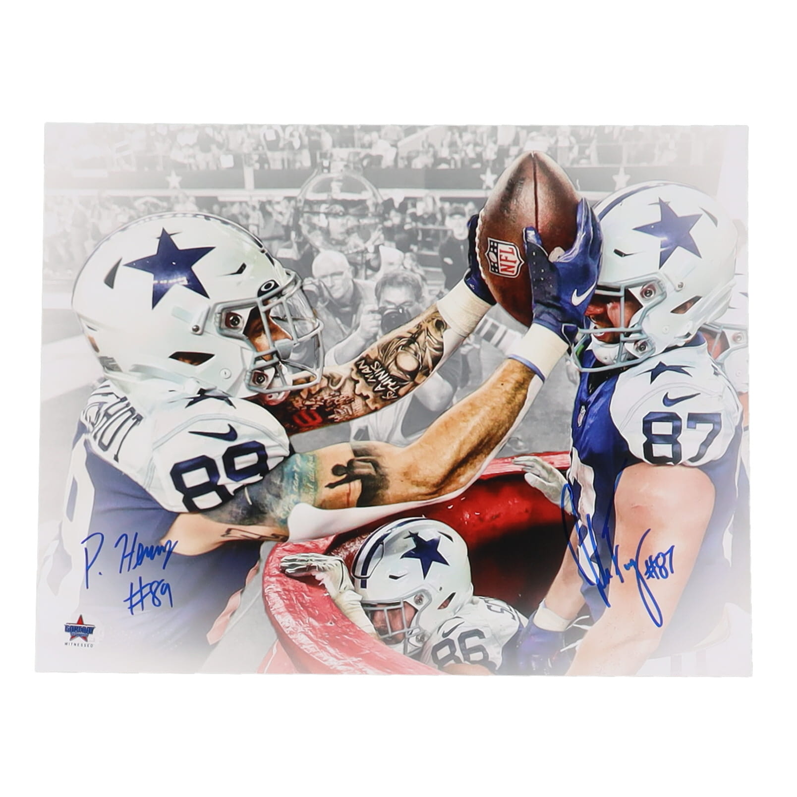 Photo measures 11" x 14" in size. Hand-signed by Jake Ferguson (Dallas Cowboys) and Peyton Hendershot (Dallas Cowboys).