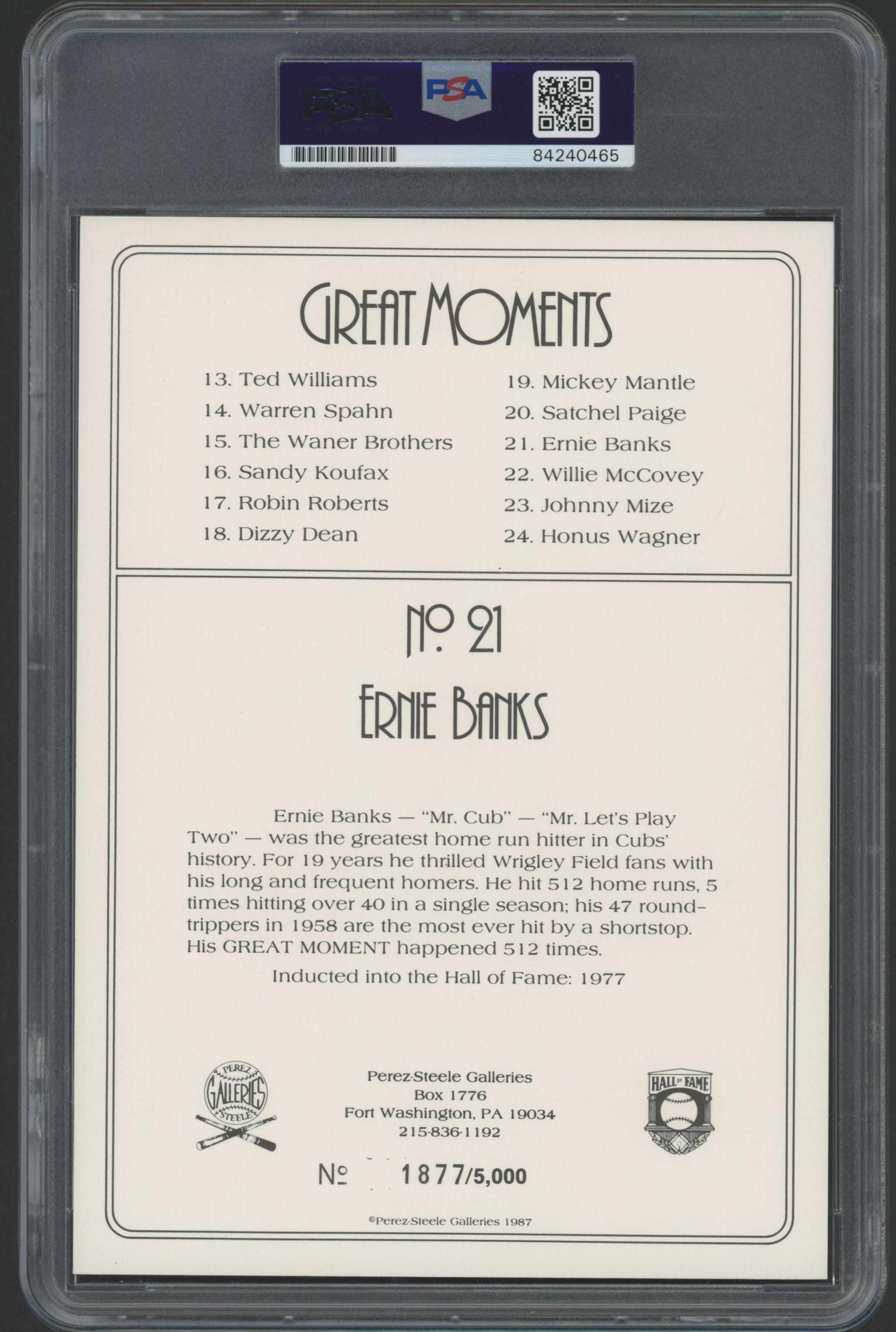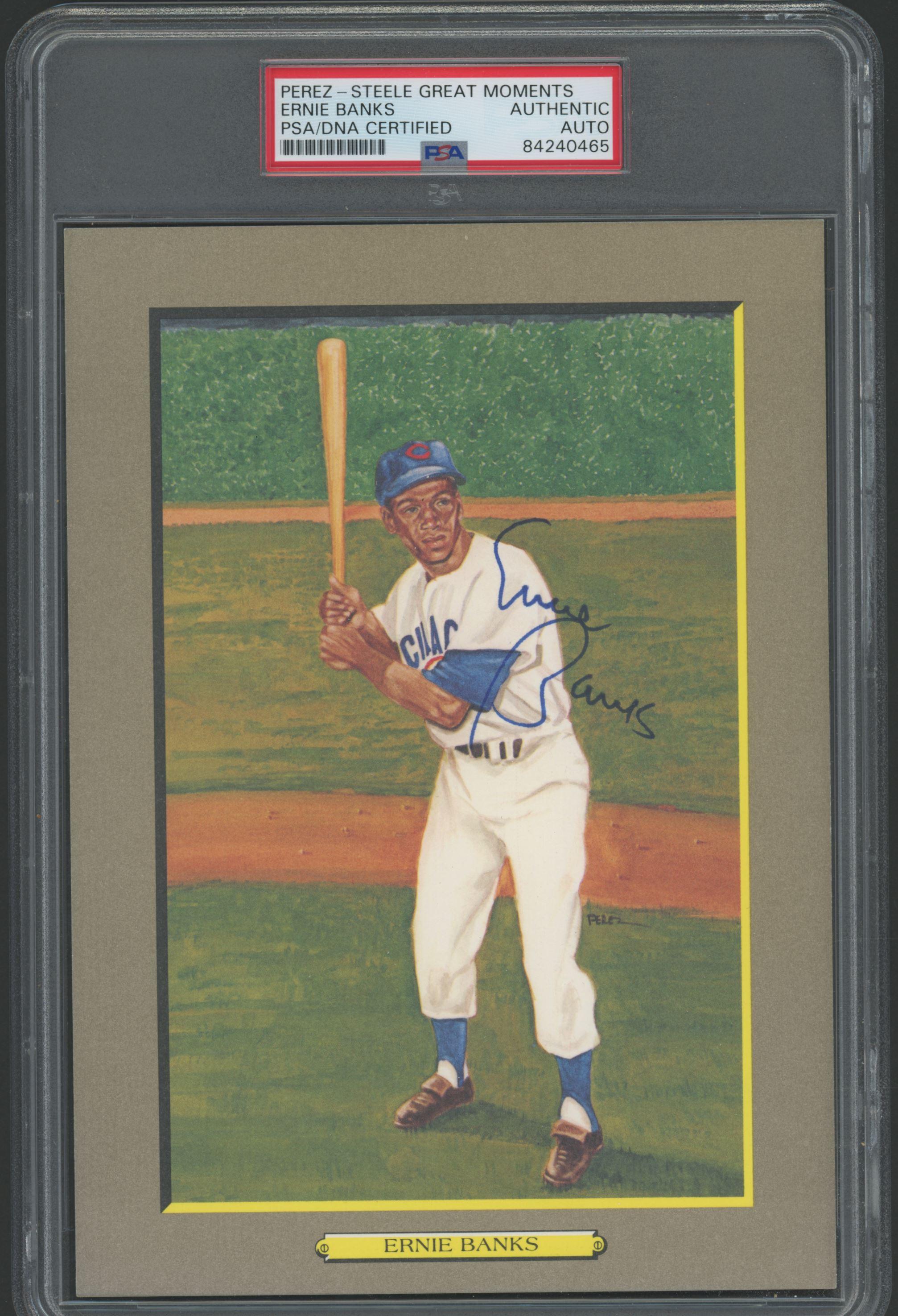 Ernie Banks Signed 1985-97 Perez-Steele Great Moments #21 #1877/5000 (PSA)