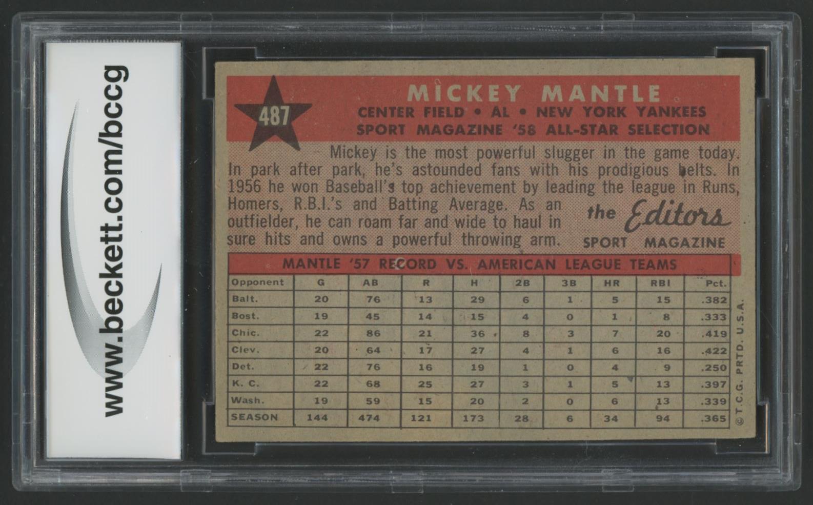 Mickey Mantle 1958 Topps #487 AS TP (BCCG 8)