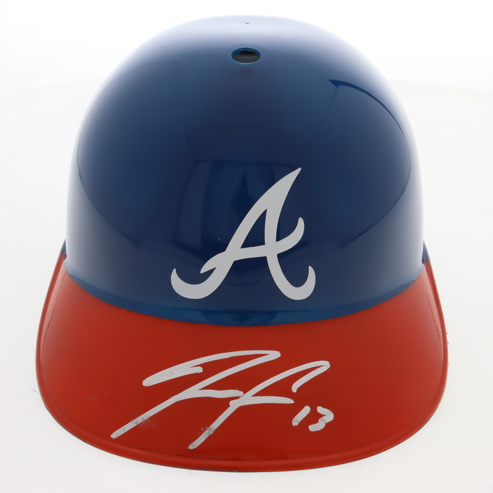 Atlanta Braves full-size plastic souvenir replica batting helmet. Hand-signed by Ronald Acuna Jr. Please note, there is scuffing on the helmet.
