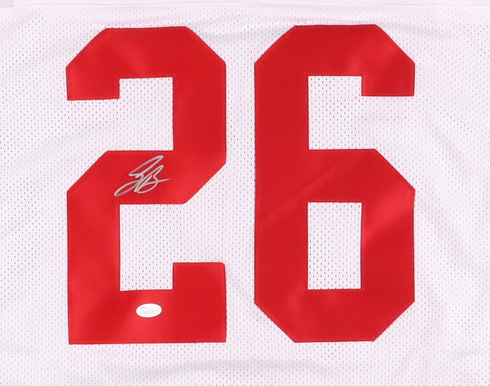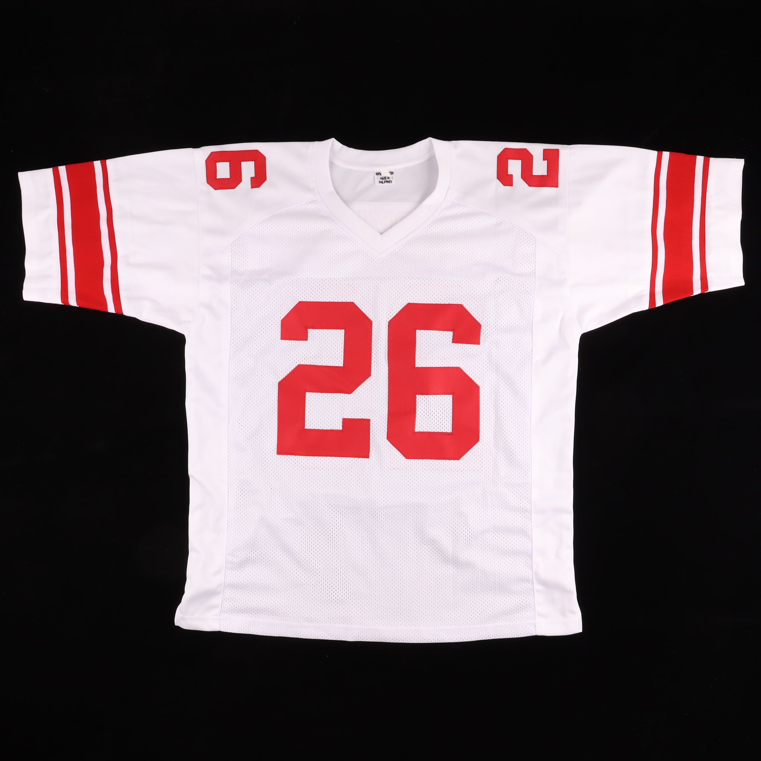 Custom jersey. Everything is sewn on, size XL. Hand-signed by Saquon Barkley.