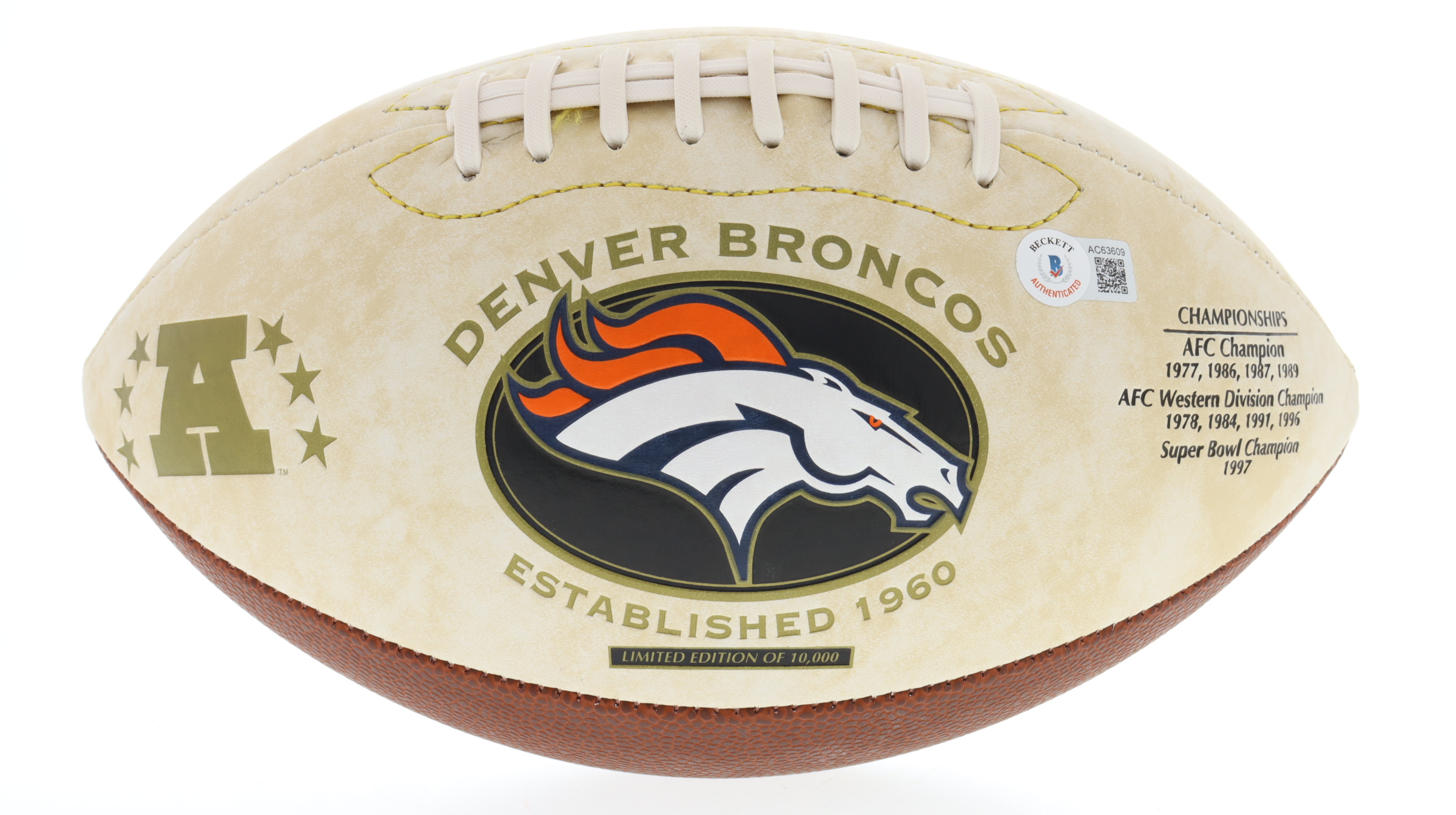 Denver Broncos Logo Football. Hand-signed by Rod Smith (Denver Broncos).