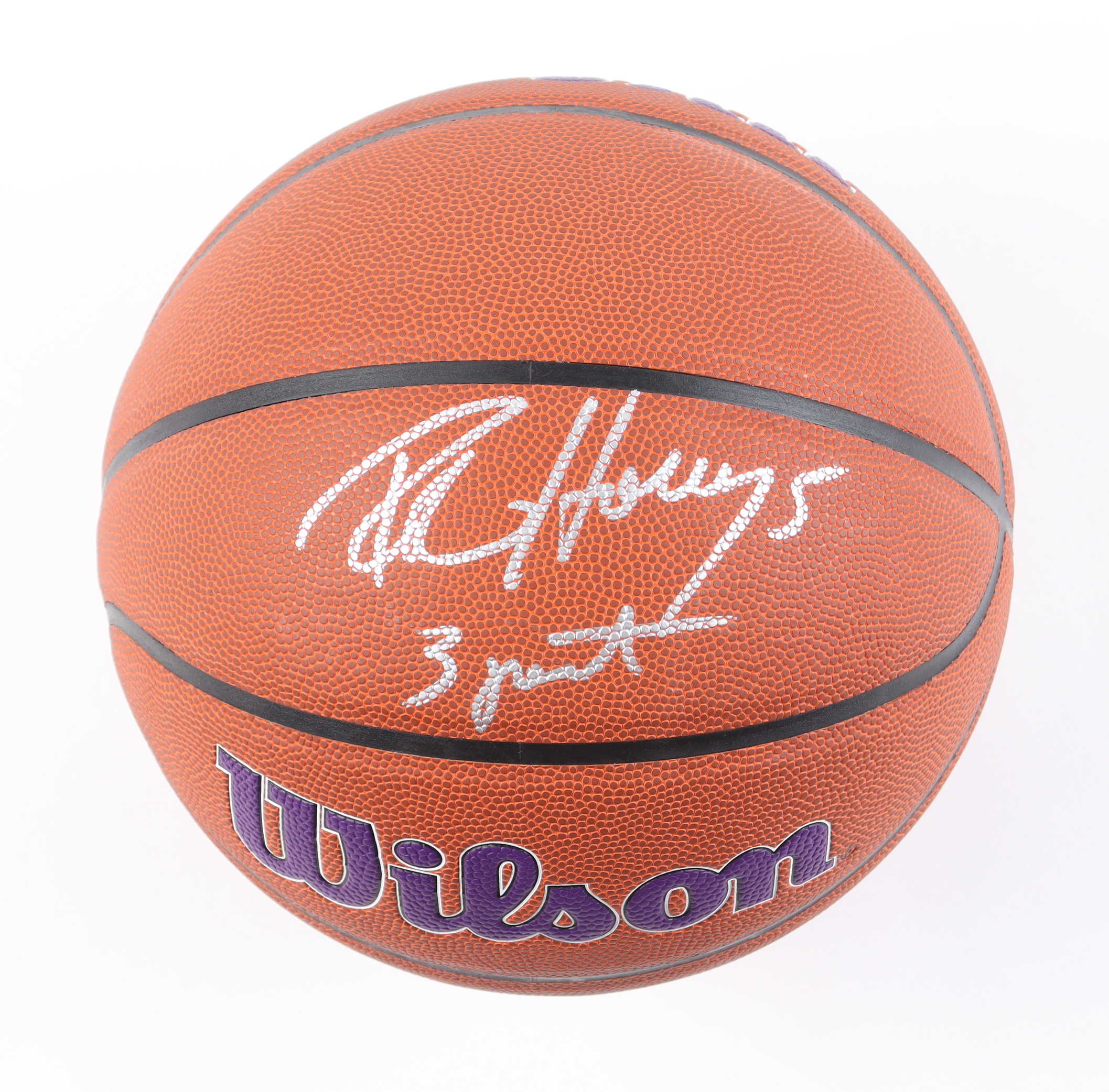 Wilson Lakers logo NBA basketball has been hand-signed and inscribed by Robert Horry (Los Angeles Lakers).