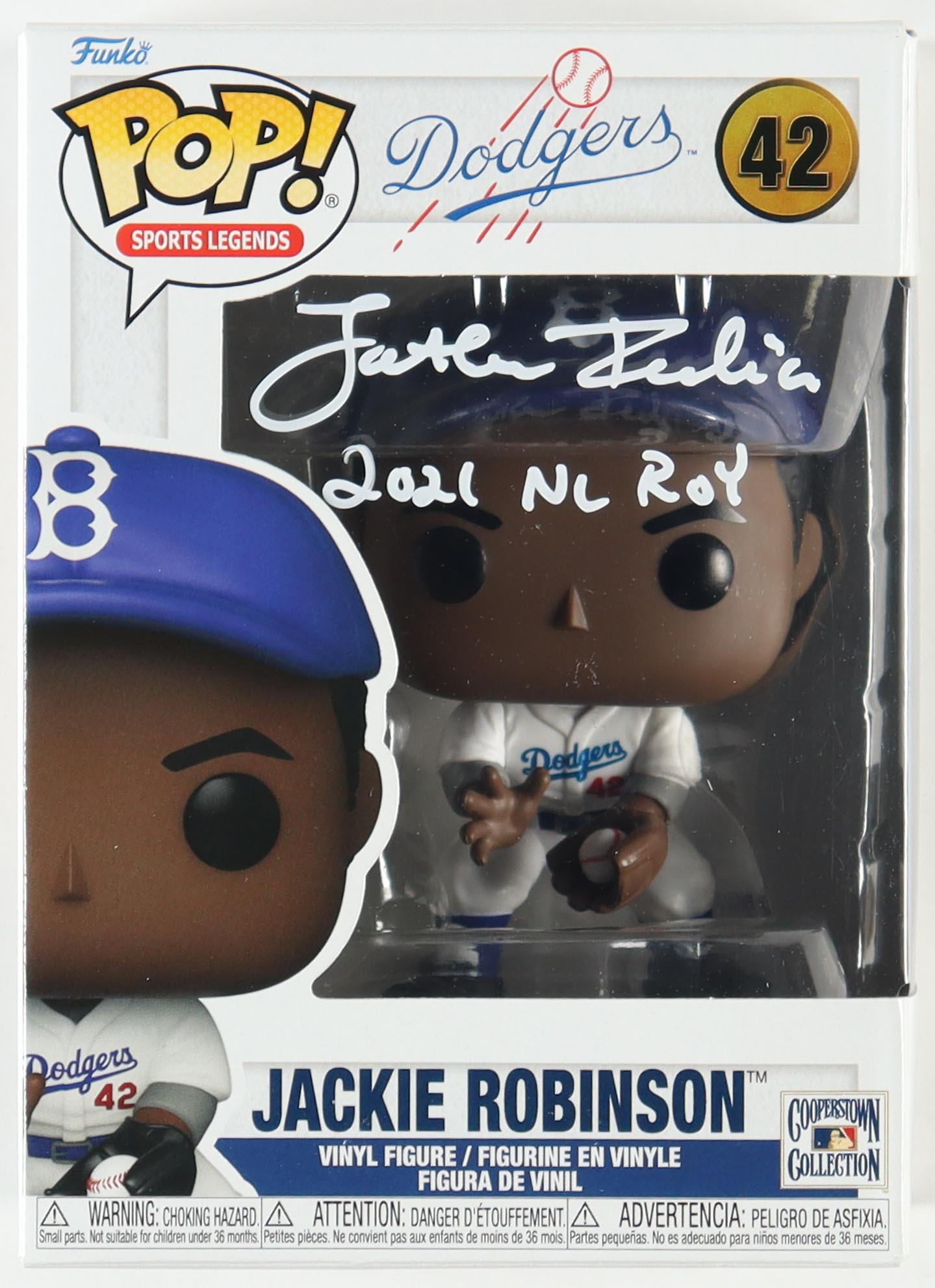 Jonathan India Signed Jackie Robinson "Brooklyn Dodgers" #42 Funko Pop! Vinyl Figure Inscribed "2021 NL ROY" (PSA)