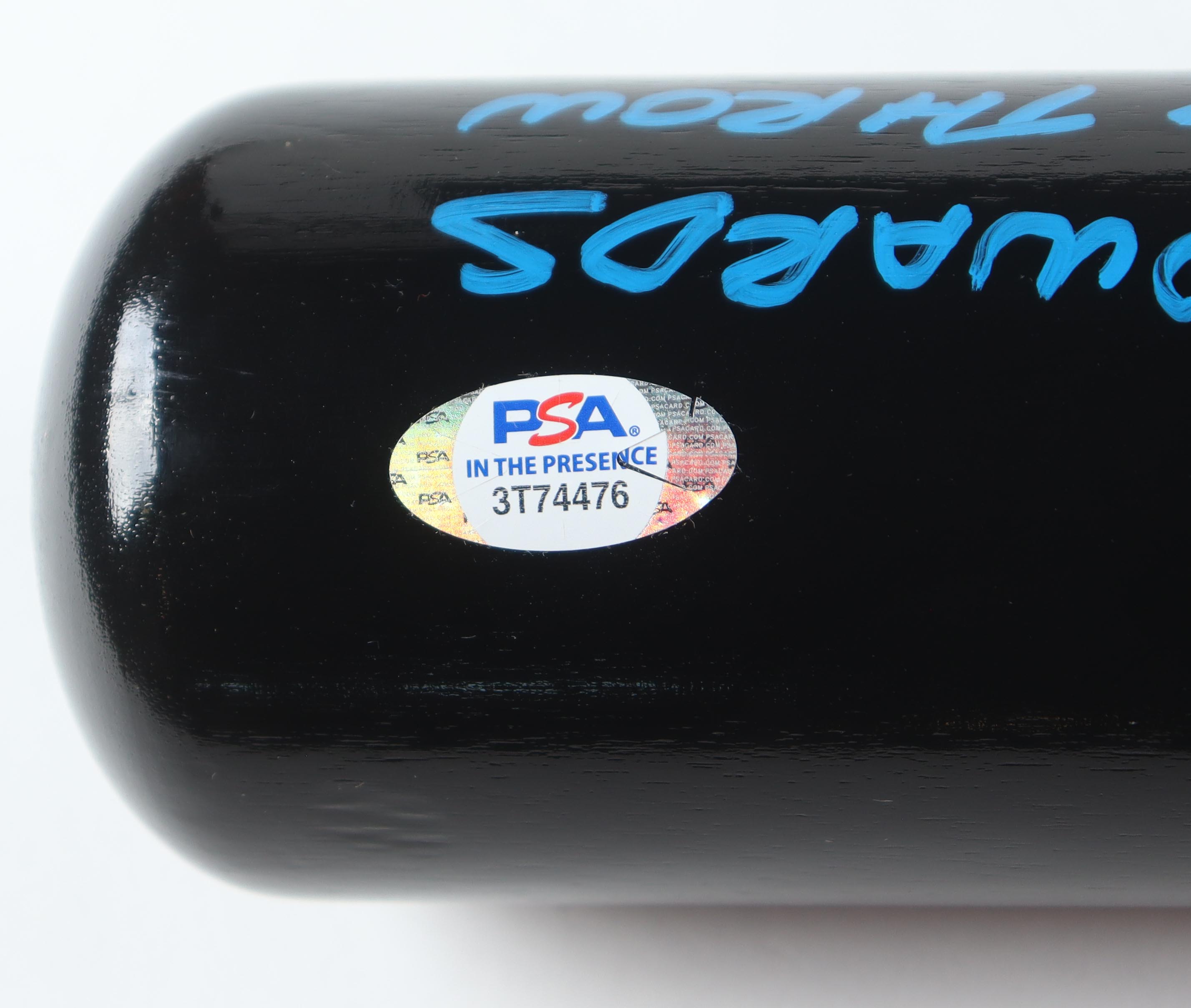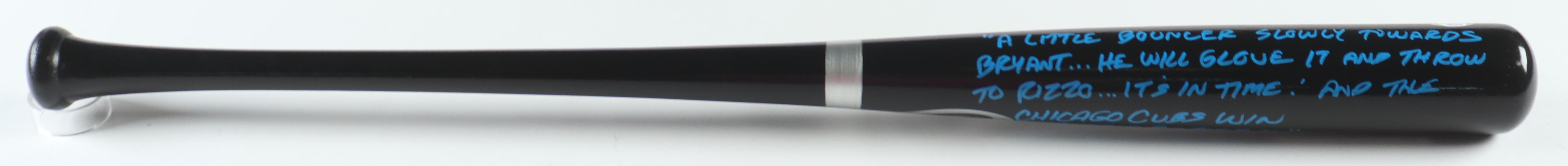 Rawlings Adirondack Big Stick Player Model Chicago Cubs 2016 World Series Last Out Call baseball bat. Hand-signed and inscribed by Pat Hughes (MLB Commentator).