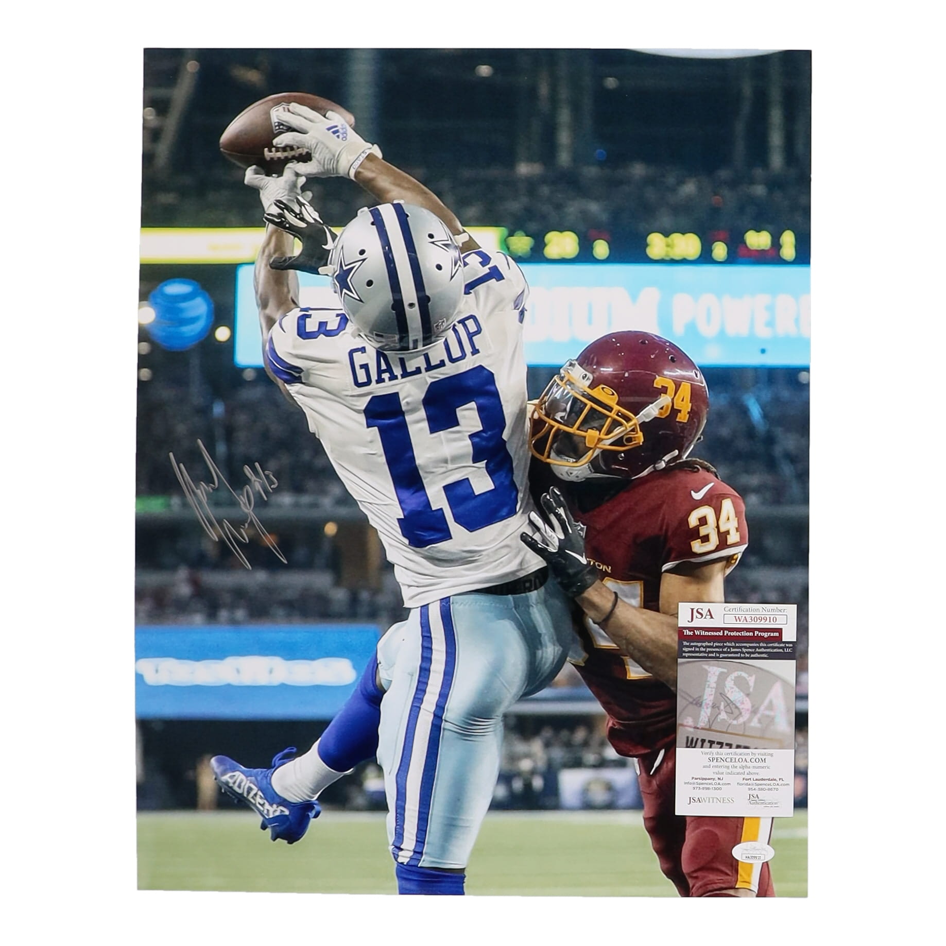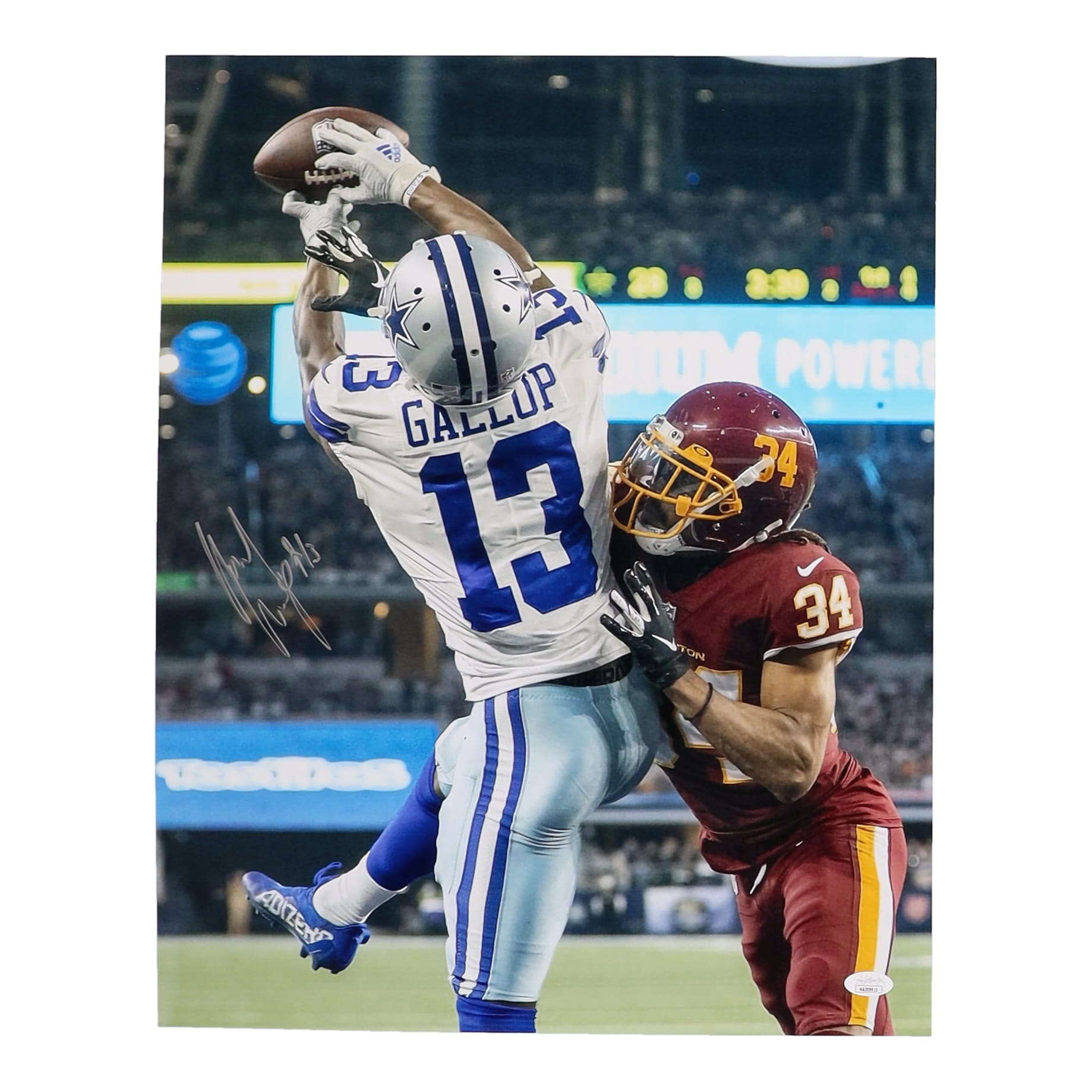 Photo measures 16" x 20" in size and has been hand-signed by Michael Gallup (Dallas Cowboys).