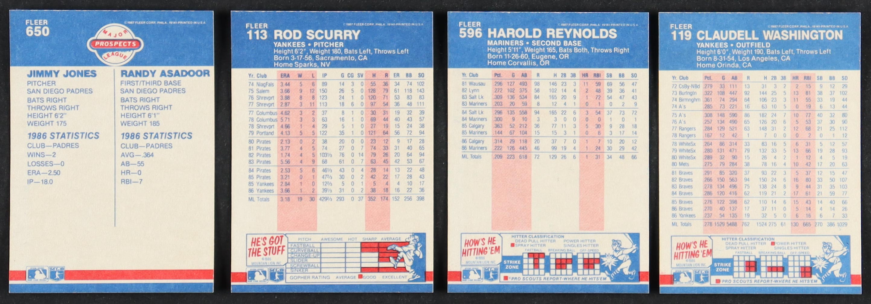 1987 Fleer Baseball Complete Set of (660) Cards with Jone & Asadoor #650, Claudell Washington #119, Harold Reynolds #596, Rod Scurry #113