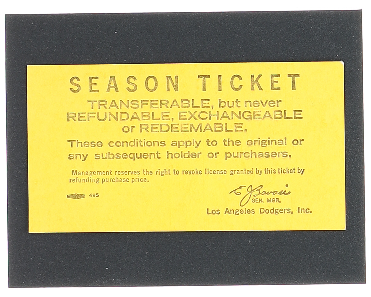Original 1966 Dodger Stadium Season Tickets Field Box Ticket Stub