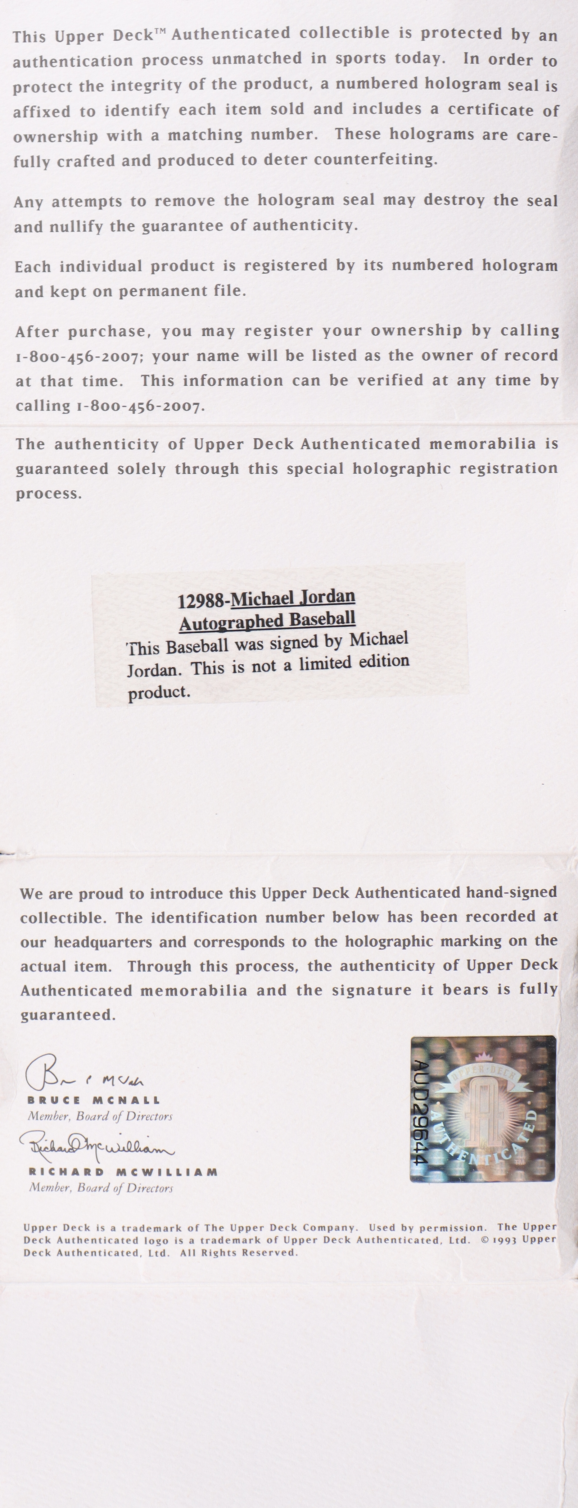 The baseball includes an official Upper Deck Authenticated (UDA) hologram and matching COA as well as an official MLB Authentication for authenticity purposes.