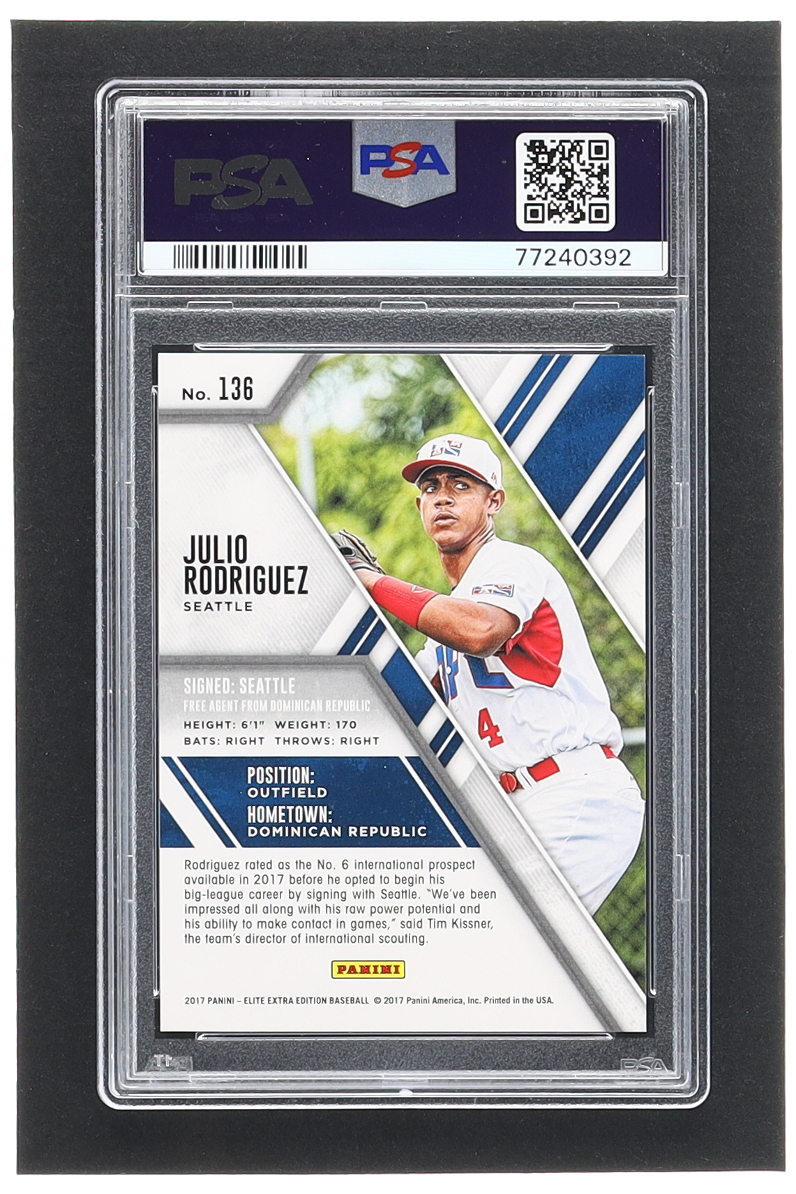 Julio Rodriguez 2017 Elite Extra Edition #136 RC #769/999 (PSA 10)