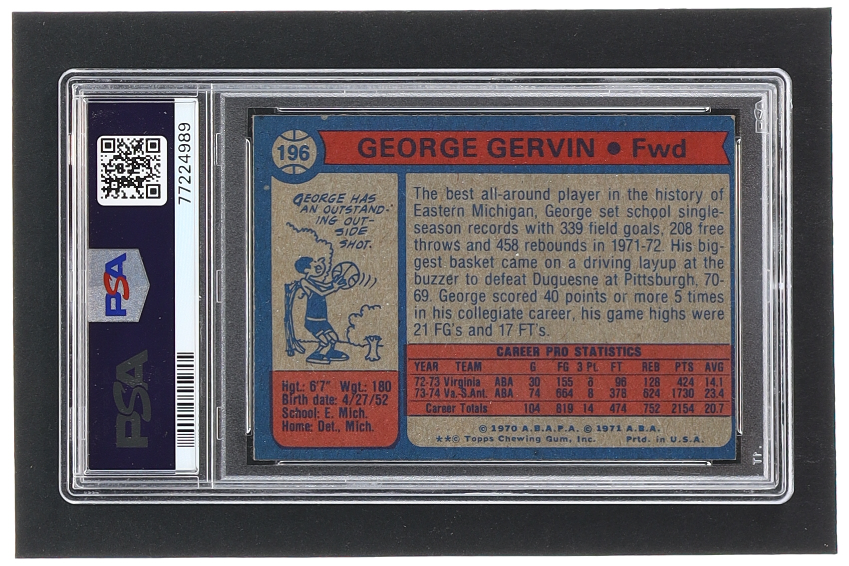 George Gervin 1974-75 Topps #196 RC (PSA 6)