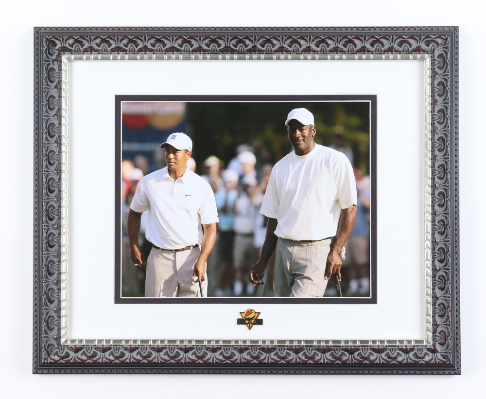 Michael Jordan & Tiger Woods Custom Framed Photo Display with Nike Tour Pin