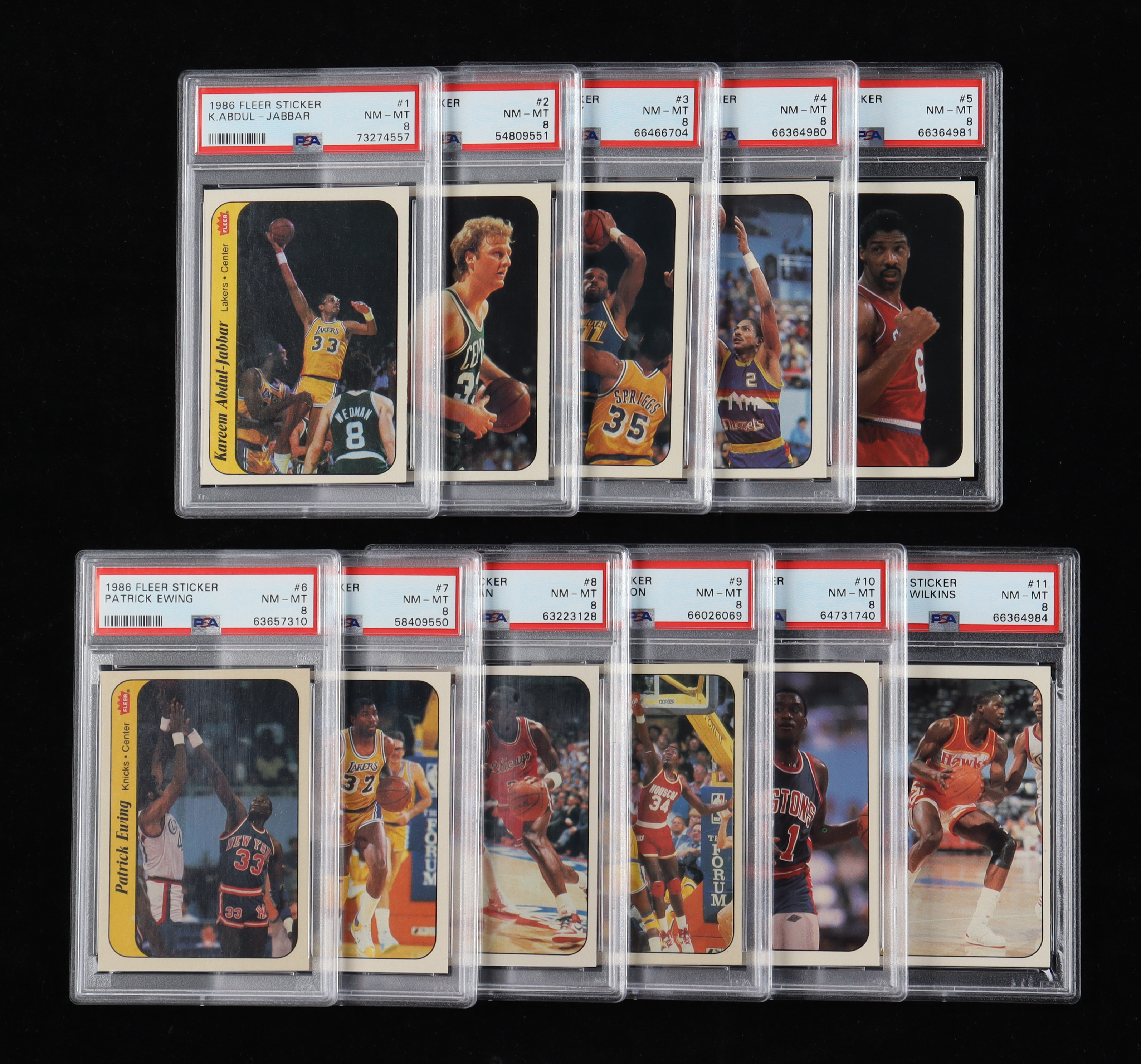 1986-87 Fleer Stickers Basketball Complete Set of (11) Cards ALL Graded PSA 8 with Michael Jordan RC