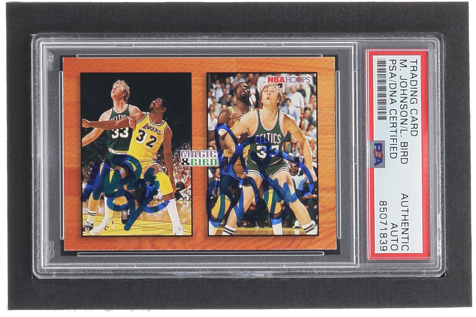 Card has been hand-signed by Magic Johnson (Los Angeles Lakers, HOF) and Larry Bird (Boston Celtics, HOF). Please see photos for details regarding the condition of the card.