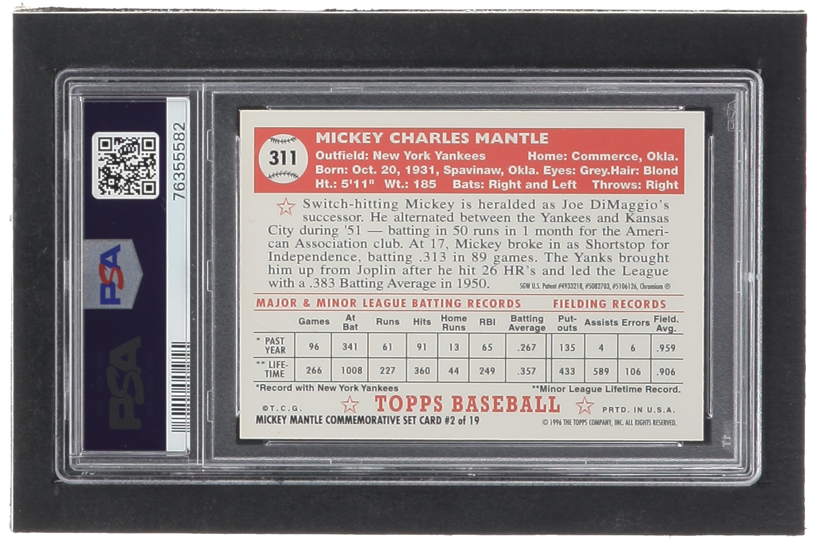 Mickey Mantle 1996 Topps Mantle Finest #2 1952 Topps (PSA 8)