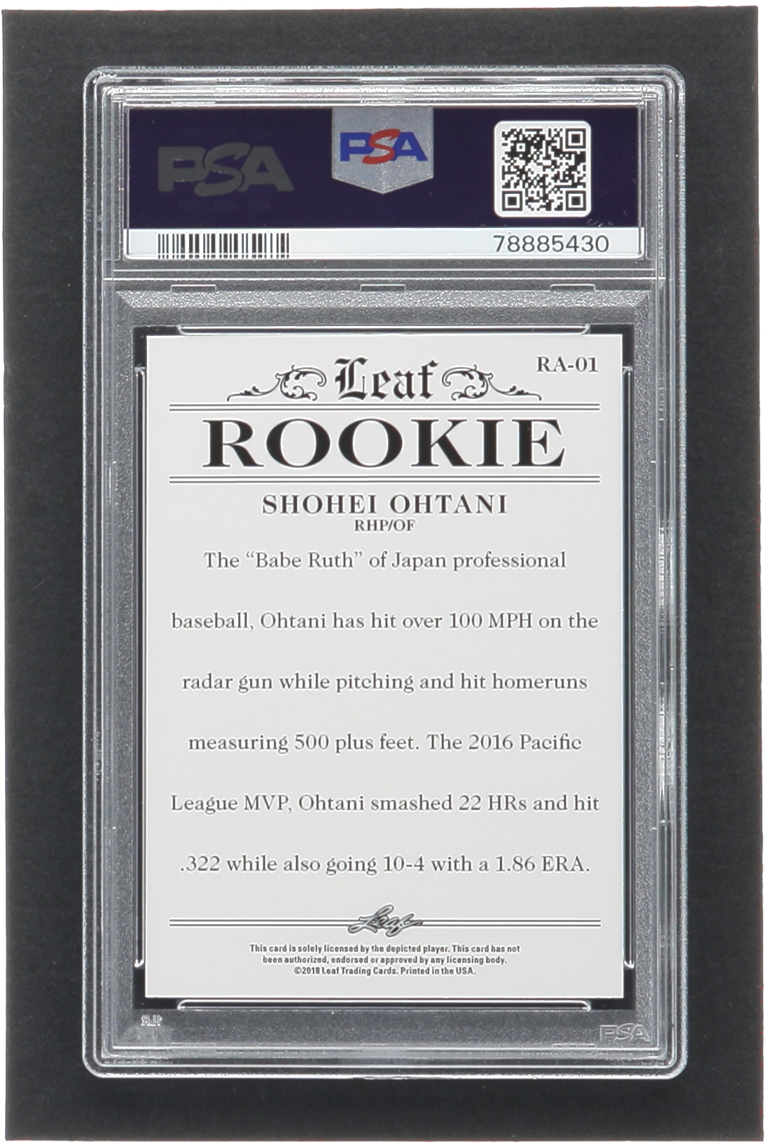 Shohei Ohtani 2018 Leaf Ohtani Rookie Achievement #RA01 (PSA 10)