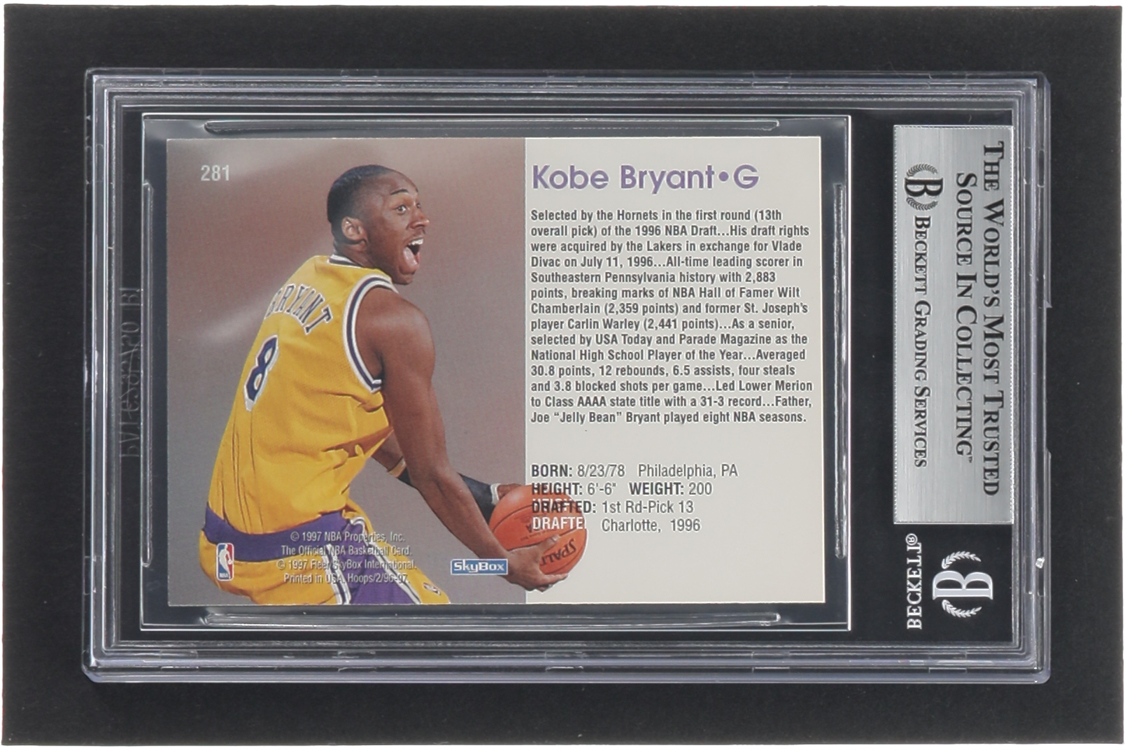 Kobe Bryant 1996-97 Hoops #281 RC (BGS 8.5)