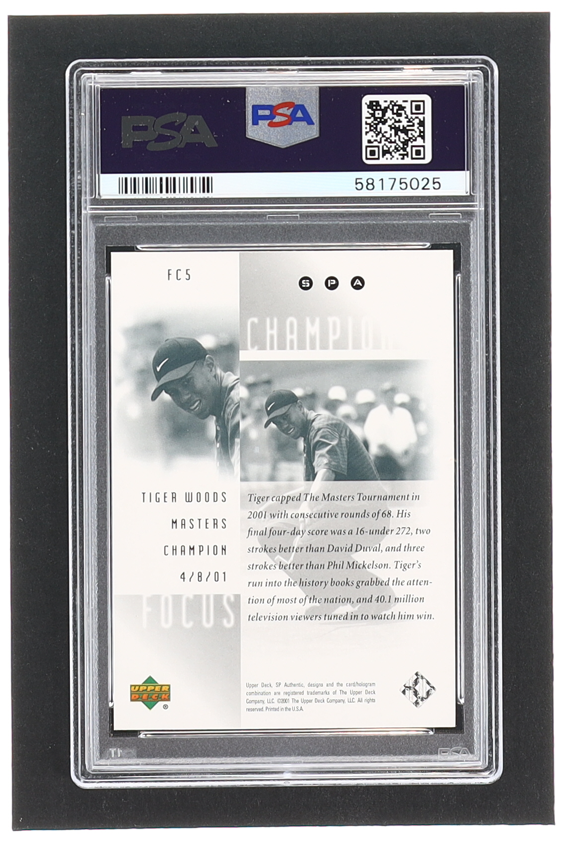 Tiger Woods 2001 SP Authentic Focus on a Champion #FC5 RC (PSA 9)