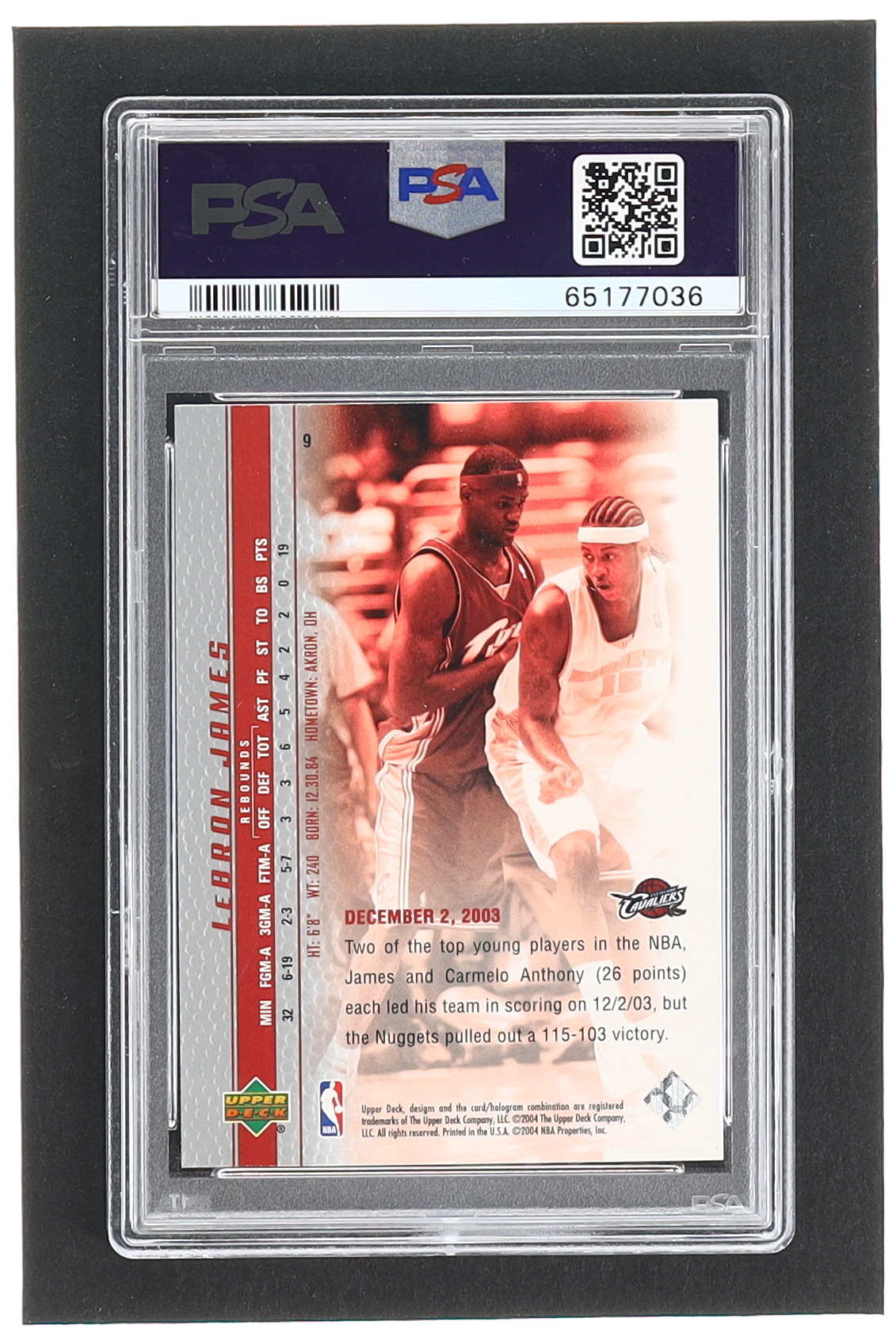 LeBron James 2003-04 Upper Deck Phenomenal Beginning LeBron James #9 RC / An Active Defender (PSA 10)
