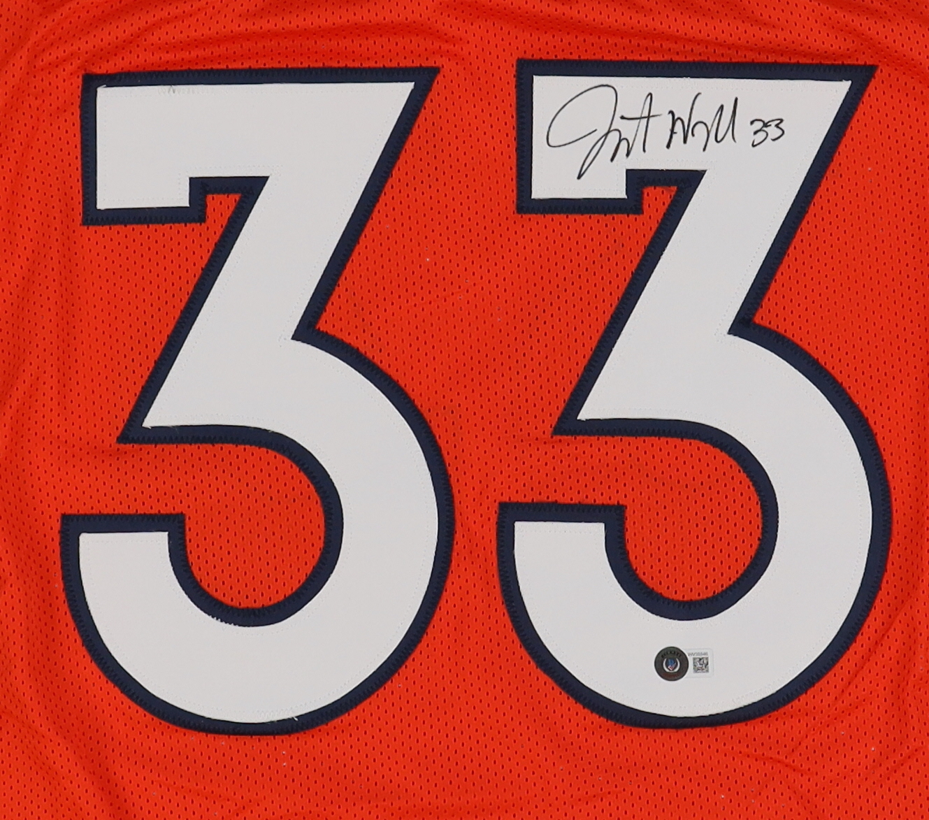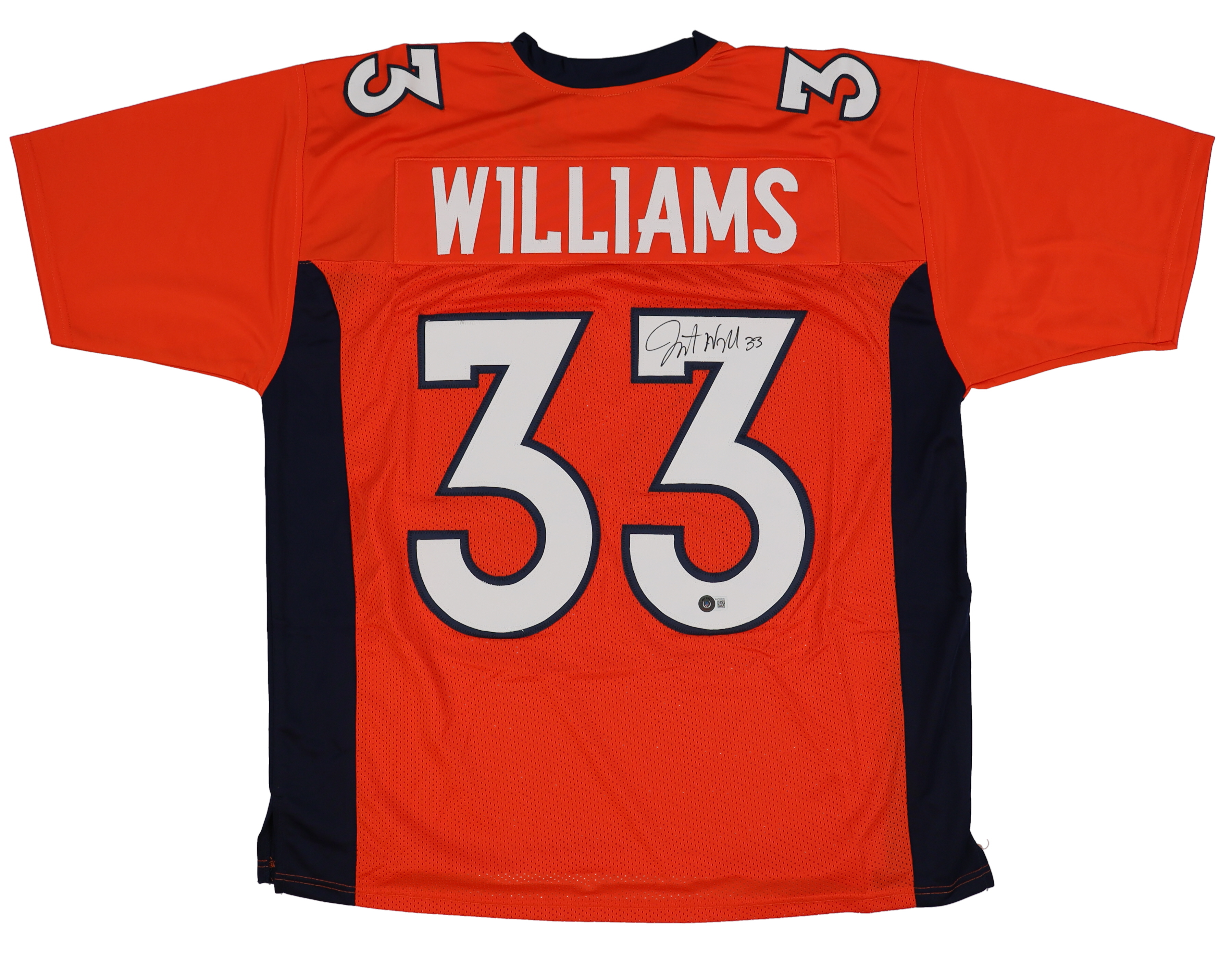 Custom jersey with everything sewn on, size XL. Hand-signed by Javonte Williams.
